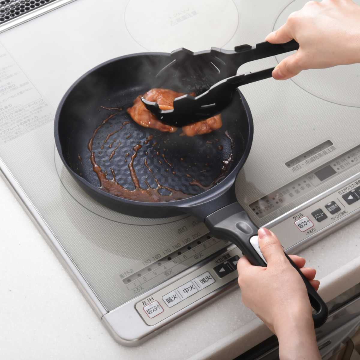 こびりつきやすいソースもスルッと落ちるので、お手入れが簡単です。また、本体と取っ手を固定するリベットがないので、洗いやすく、汚れがたまらないのもうれしいポイントです。