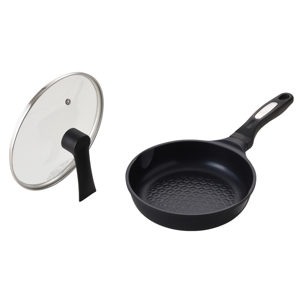 フライパンにピッタリ合うガラス蓋が付属しています。サイズに合った蓋をすることで、ガタつかず、中までしっかり火を通すことができます。取っ手は、フェノール樹脂製で熱くなりにくく、持ちあげやすいハンドルデザインです。