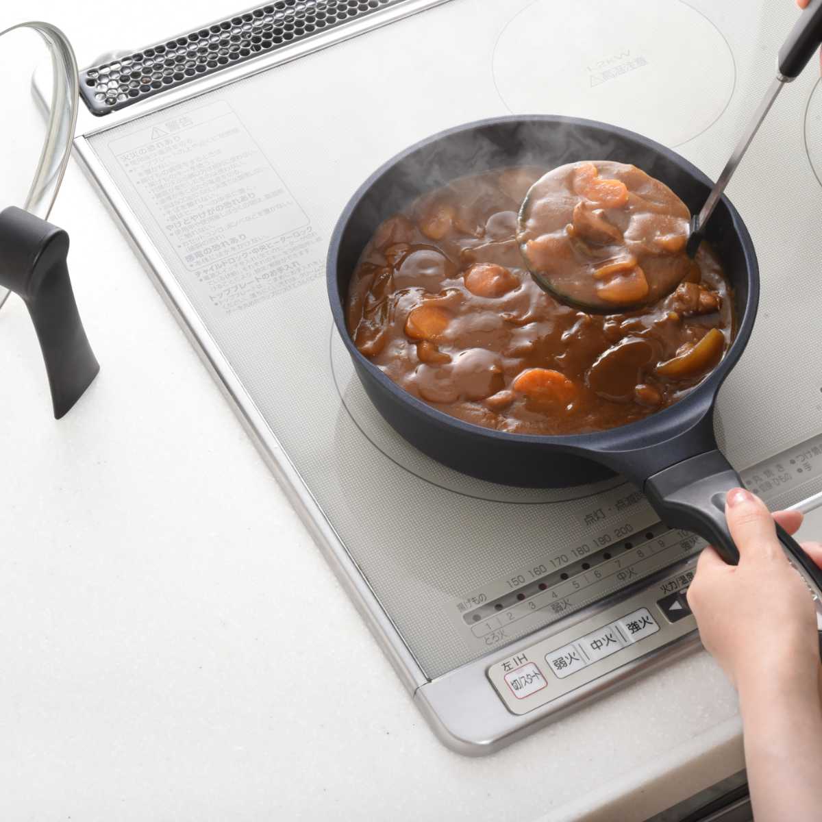 焼く・炒める・煮る・茹でる・揚げるなど、さまざまな料理で活躍する深型タイプです。料理のレパートリーが増えても使い分ける必要がなく、幅広く使えます。ガス火はもちろん、IHクッキングヒーターにも対応しています。