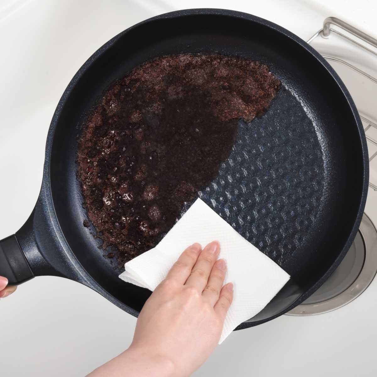 こびりつきやすいソースもスルッと落ちるので、お手入れが簡単です。また、本体と取っ手を固定するリベットがないので、洗いやすく、汚れがたまらないのもうれしいポイントです。