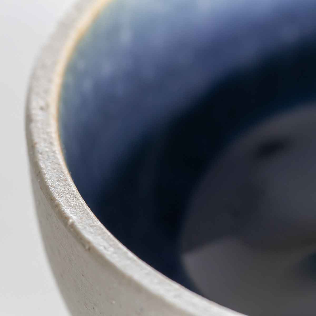 釉薬がかかっていない外側はナチュラルな質感で、手に持った時に滑りにくく、土の風合いを感じられる手触りです。釉薬が塗られた内側は光沢のあるつるりとした質感で、対照的な魅力があります。