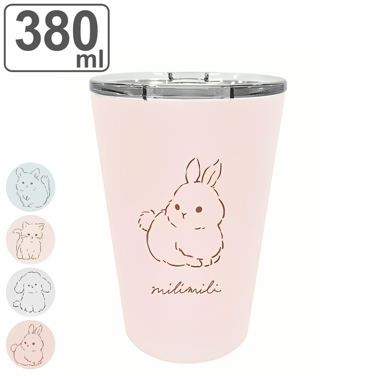 タンブラー 蓋付き 380ml ミリミリ ステンレス ( ステンレスタンブラー 動物 アニマル ステンレス製 保温 保冷 カップ コップ コンビニカップ コーヒー 紅茶 ふた付き 持ち運び ウサギ ねこ ネコ 猫 いぬ 犬 チンチラ デスクワーク ) 【ウサギ】