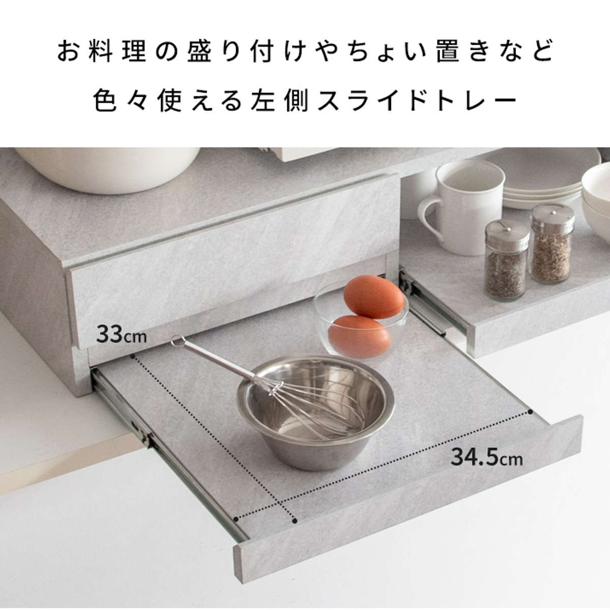 左側スライドトレーは食器や調理器具などお料理中にちょい置きに便利です。