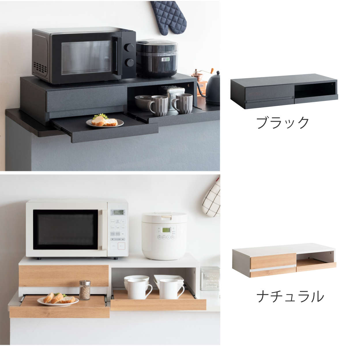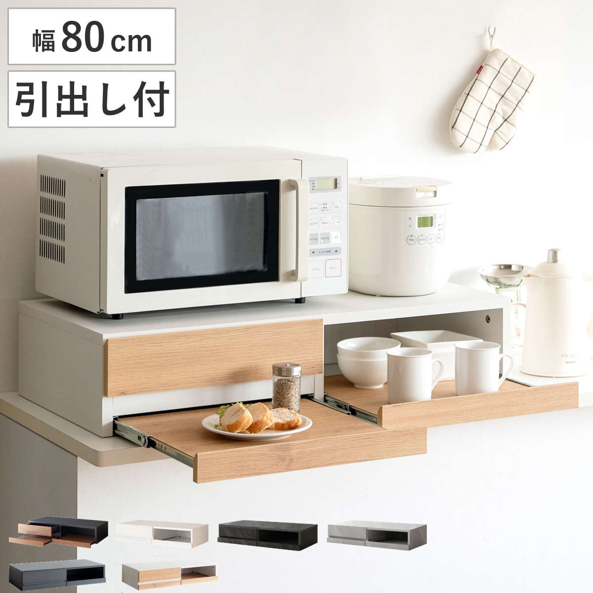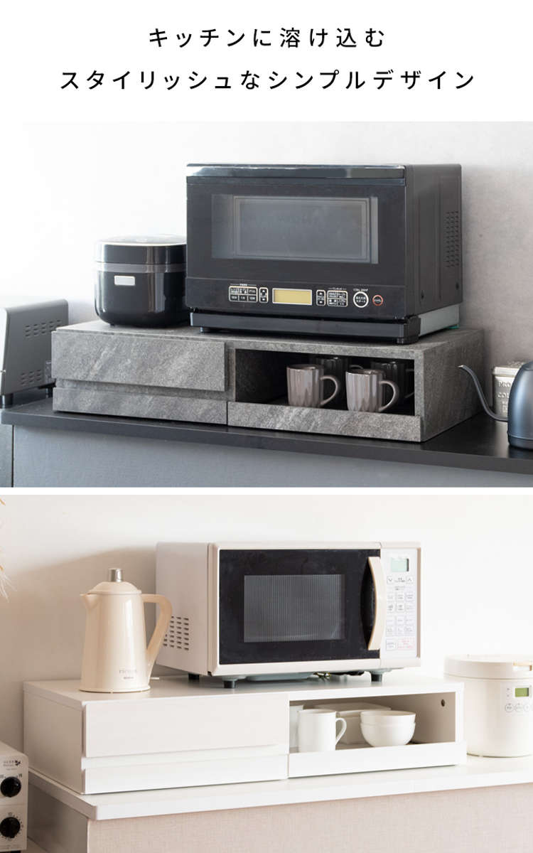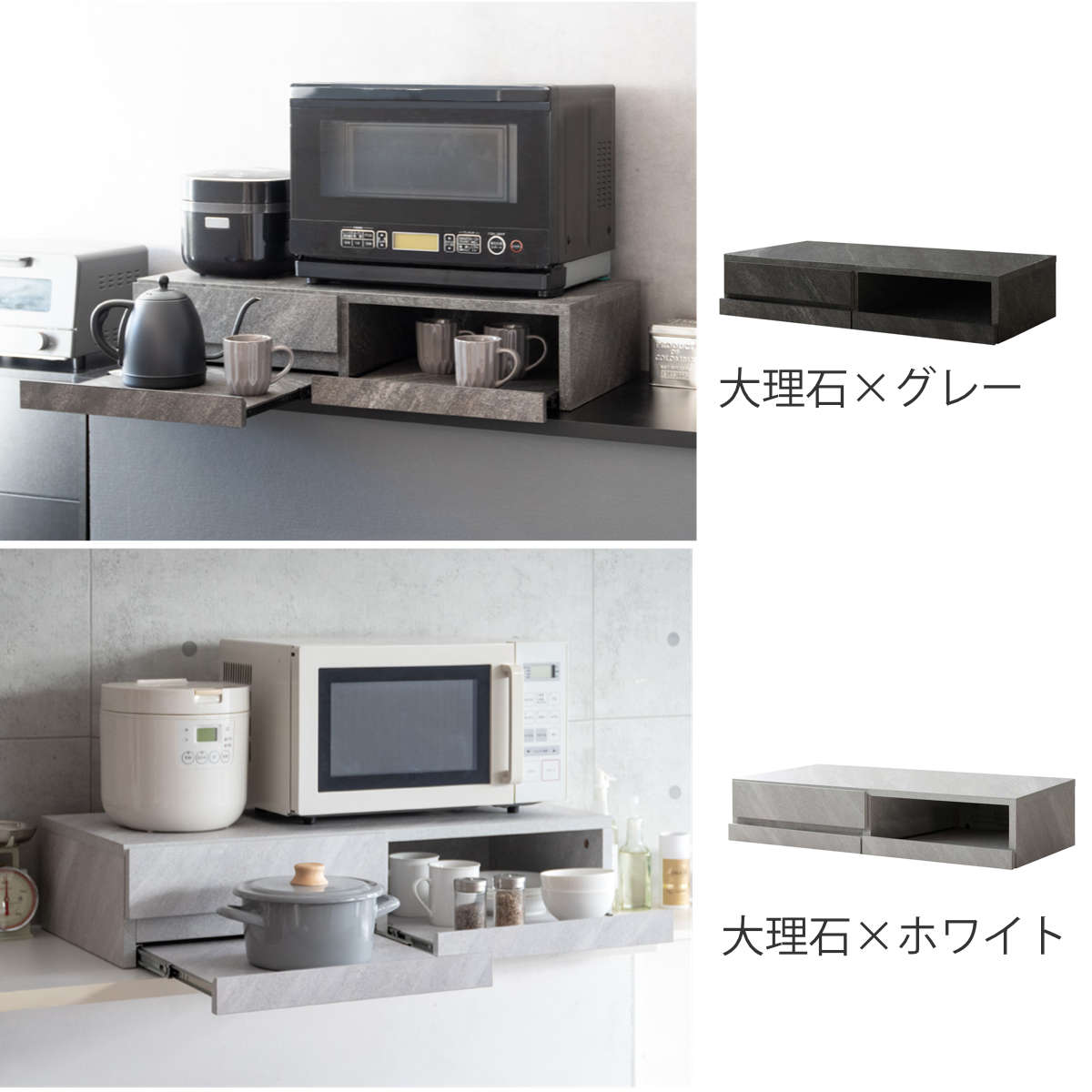 レンジラック レンジ下ラック 木目調 幅80cm 引出し付き Avenir ( アベニール 家電ラック レンジ下トレー スライドトレー 引出し 家電下ラック キッチンラック 電子レンジ下ラック スライド トレー おしゃれ 大理石調 完成品 ) 【ブラック】
