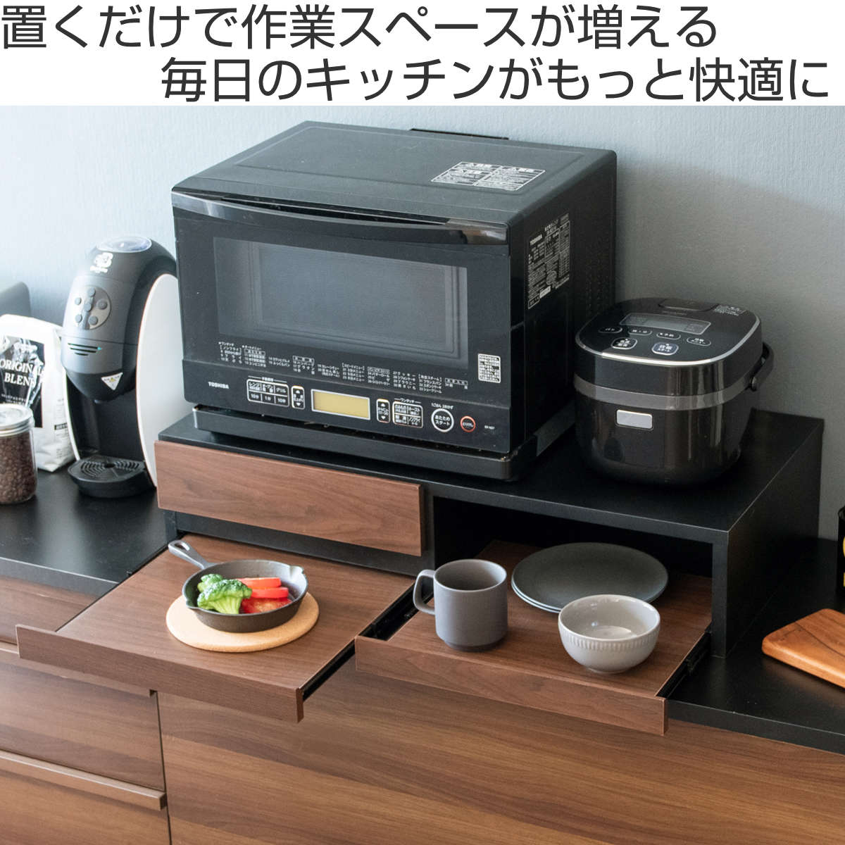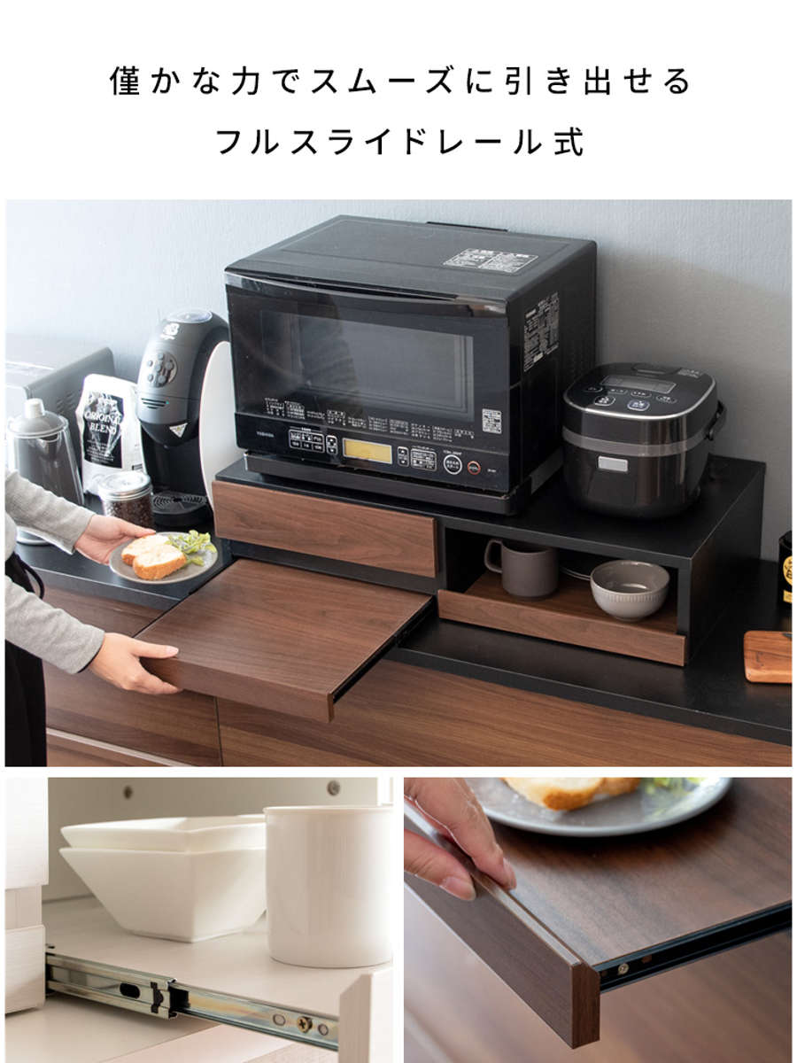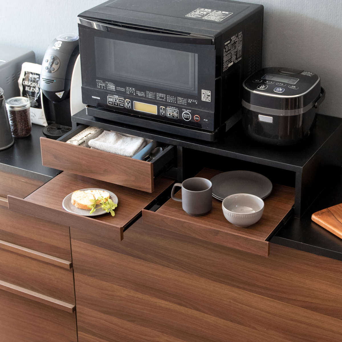 レンジラック レンジ下ラック 木目調 幅80cm 引出し付き Avenir ( アベニール 家電ラック レンジ下トレー スライドトレー 引出し 家電下ラック キッチンラック 電子レンジ下ラック スライド トレー おしゃれ 大理石調 完成品 ) 【ブラック】