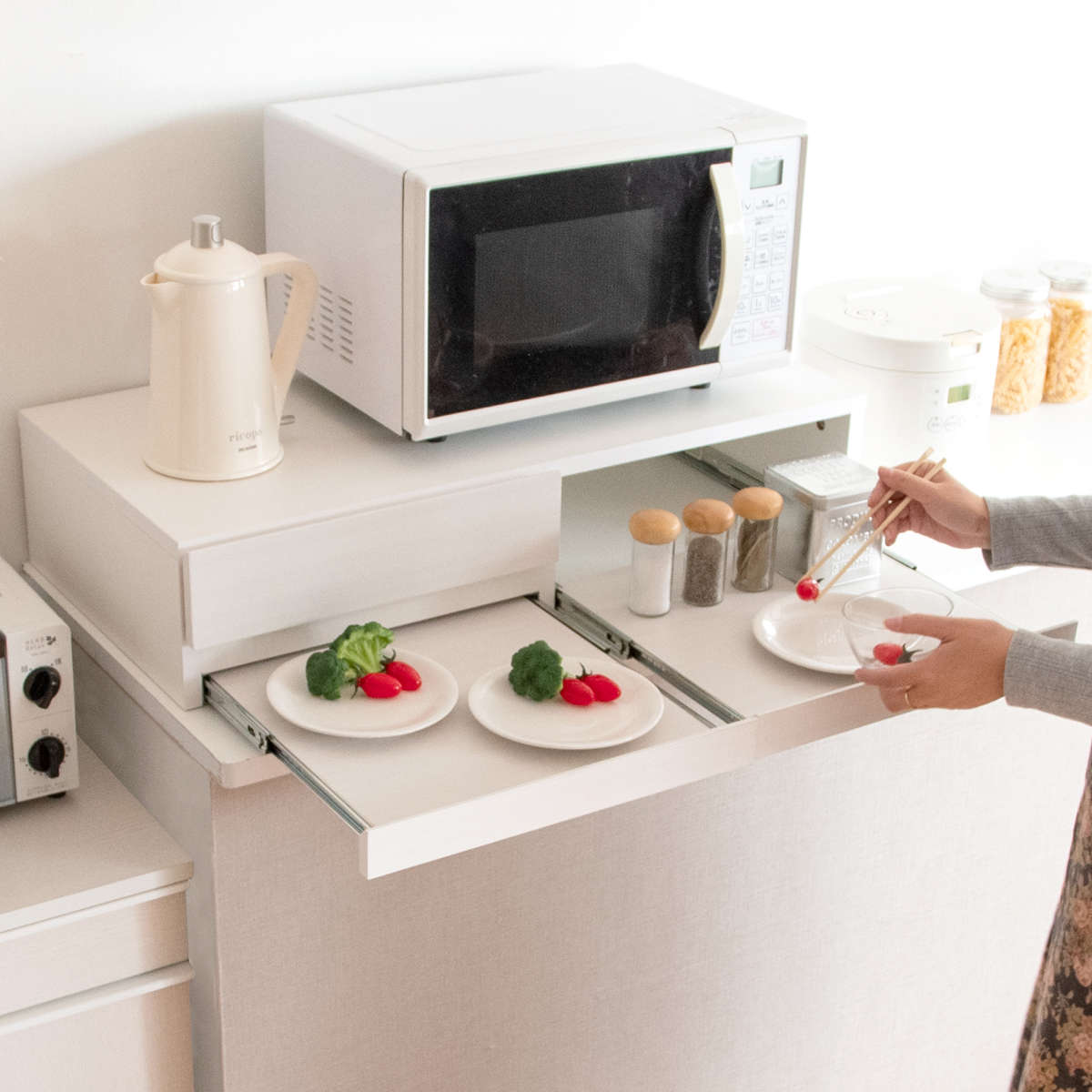 使わない時は邪魔にならず、必要な時だけ引き出せる便利なスライドトレーなので、手狭なキッチンのお家やワンルームの一人暮らしの方におすすめです。