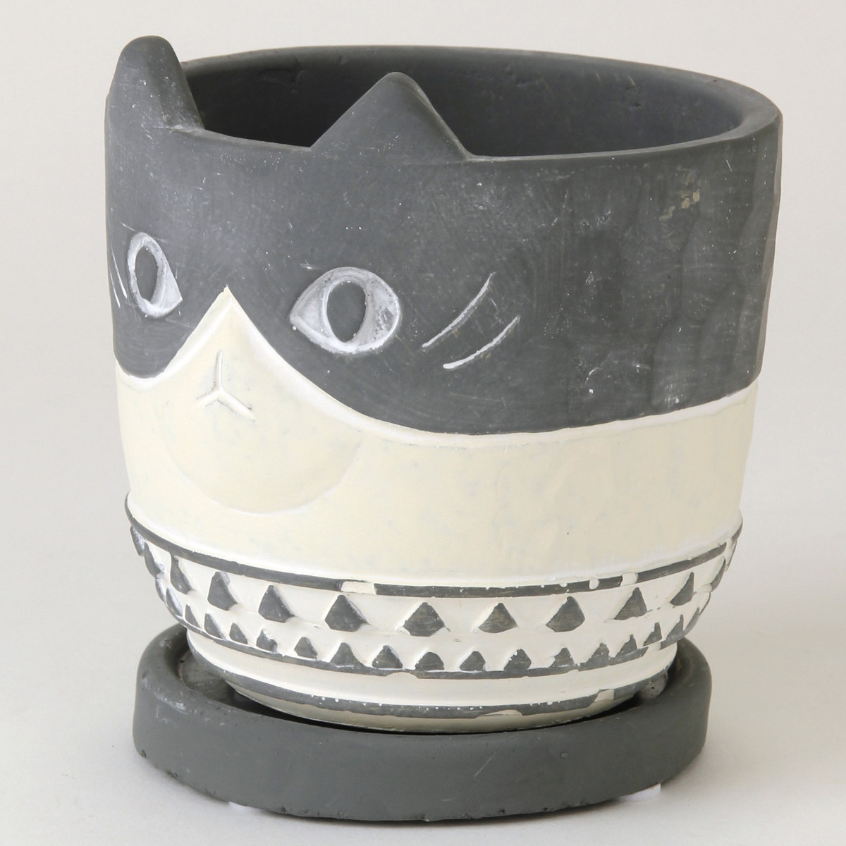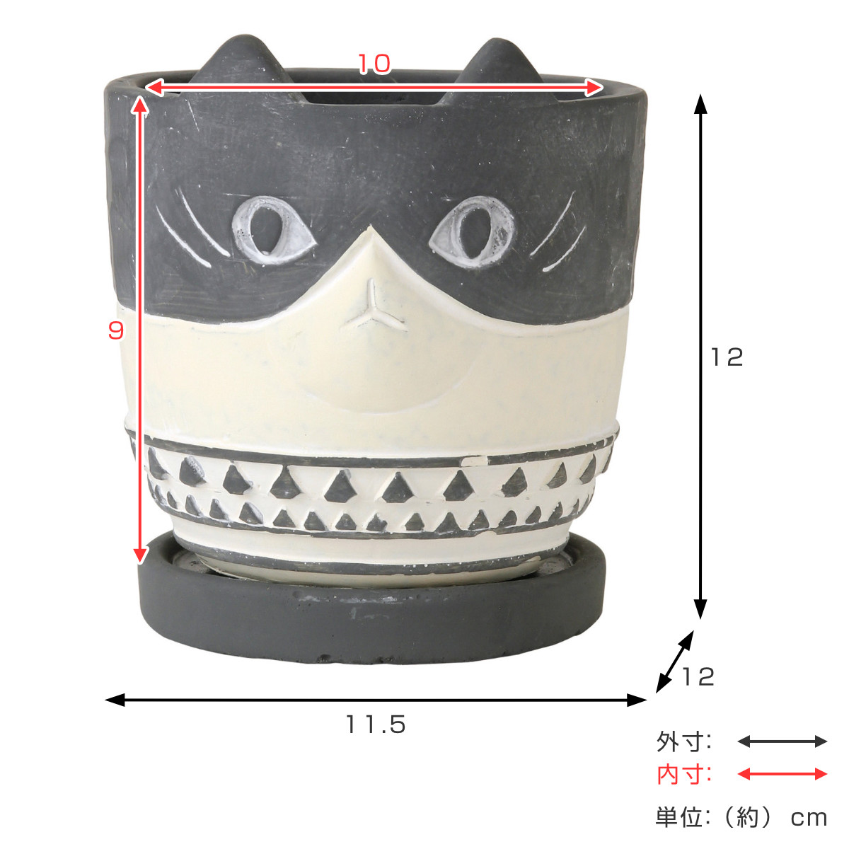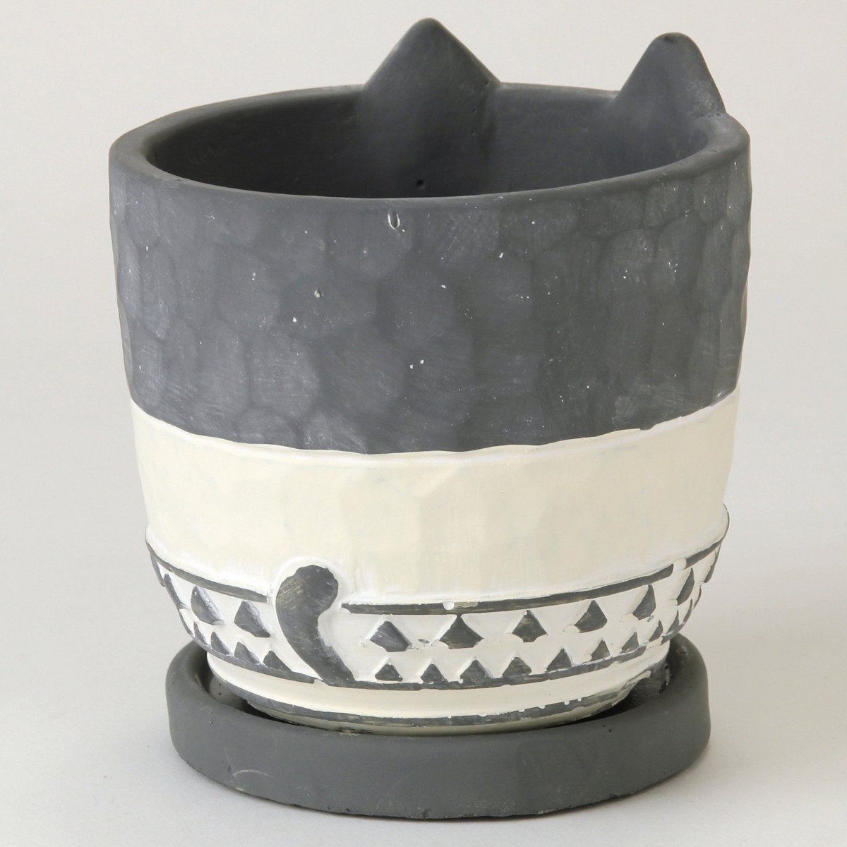 植木鉢 アニマルプランター キャットA ( プランター プラントポット 植物用ポット 鉢 花器 鉢カバー ポット セメント 3号鉢 丸 猫 植木鉢カバー ガーデンポット 花 水抜穴付き 受け皿 植物 観葉植物 園芸 直植え おしゃれ )