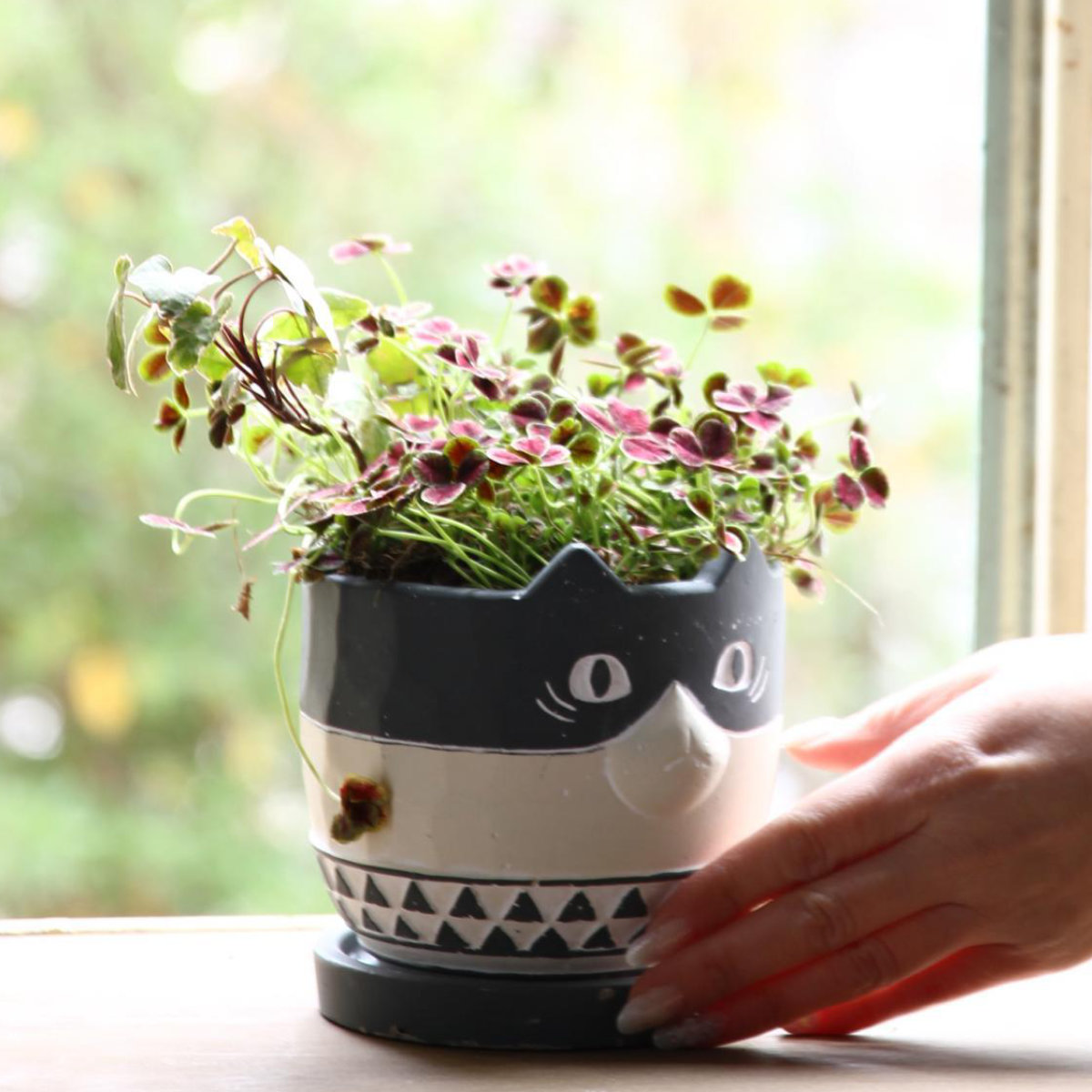 北欧風にデザインされたネコの顔がモチーフになったプランターです。シンプルな色合いなので、インテリアに馴染みやすく、どんな植物も引き立ててくれます。ちょっとしたスペースに置くことができるサイズで、玄関先でゲストをお出迎えしたり、室内に置いて自分だけの癒しの空間を作ることができます。
