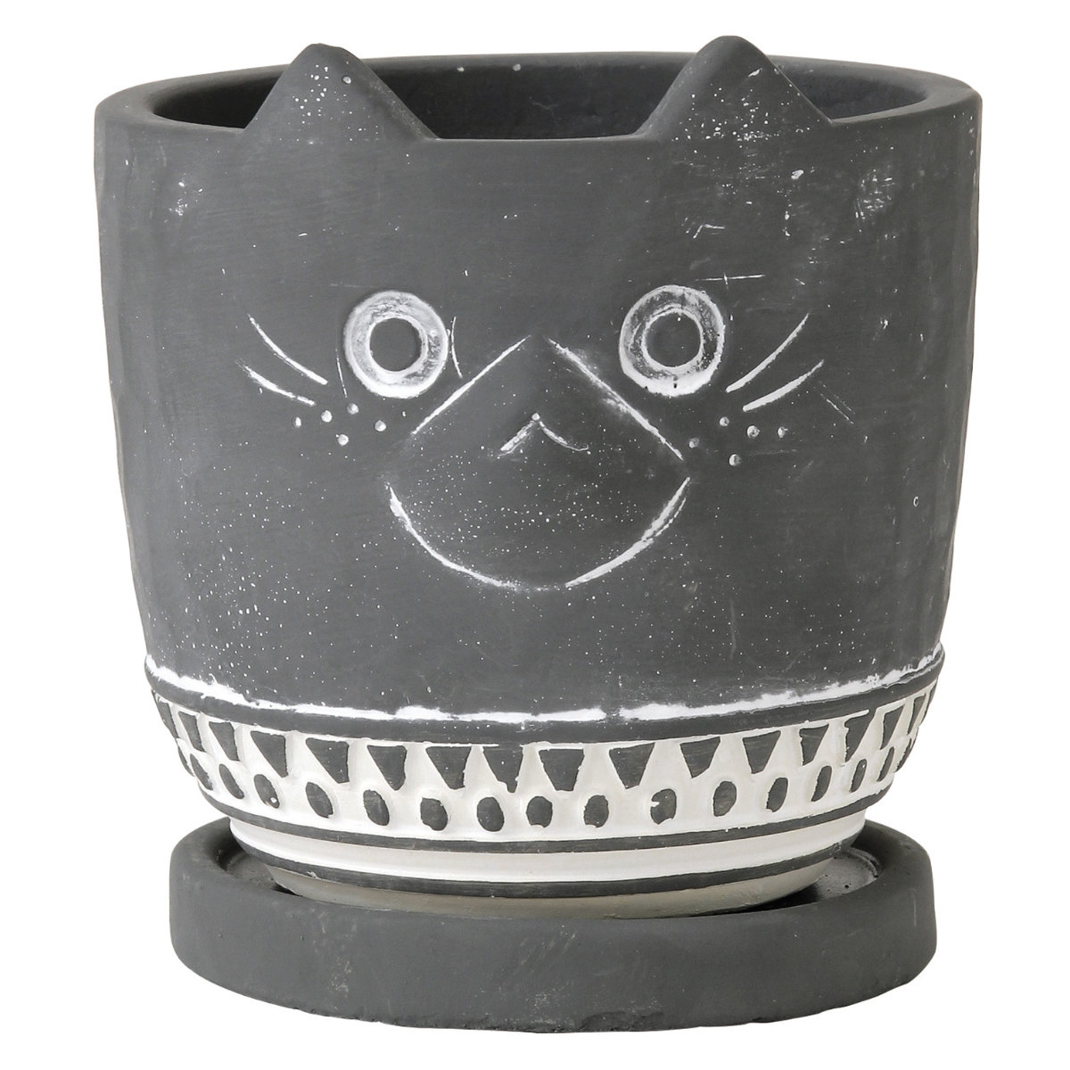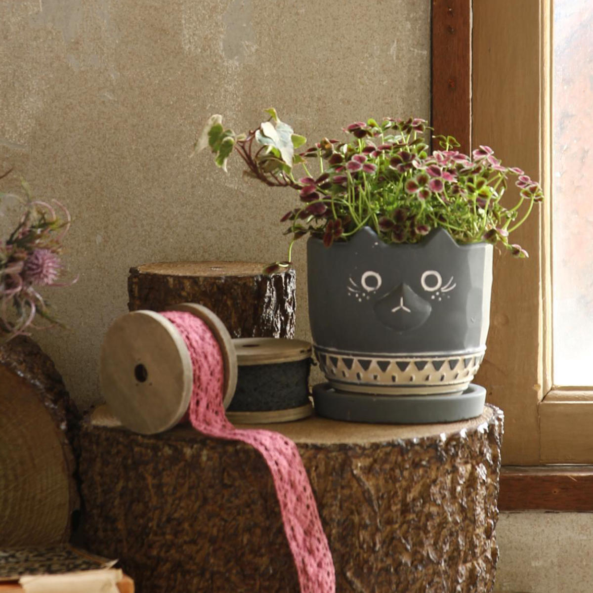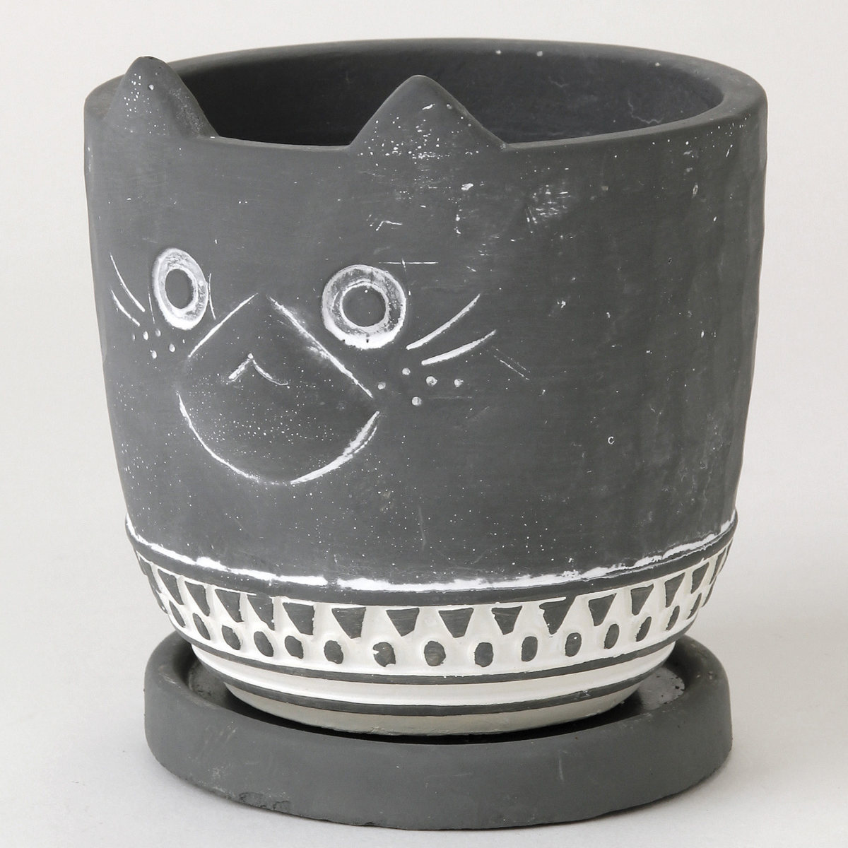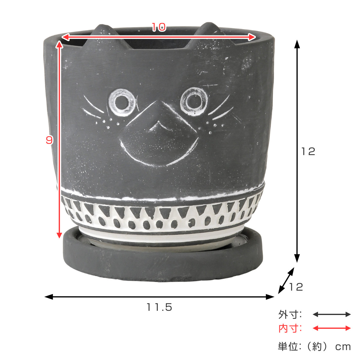 植木鉢 アニマルプランター キャットB ( プランター プラントポット 植物用ポット 鉢 花器 鉢カバー ポット セメント 3号鉢 丸 猫 植木鉢カバー ガーデンポット 花 水抜穴付き 受け皿 植物 観葉植物 園芸 直植え おしゃれ )