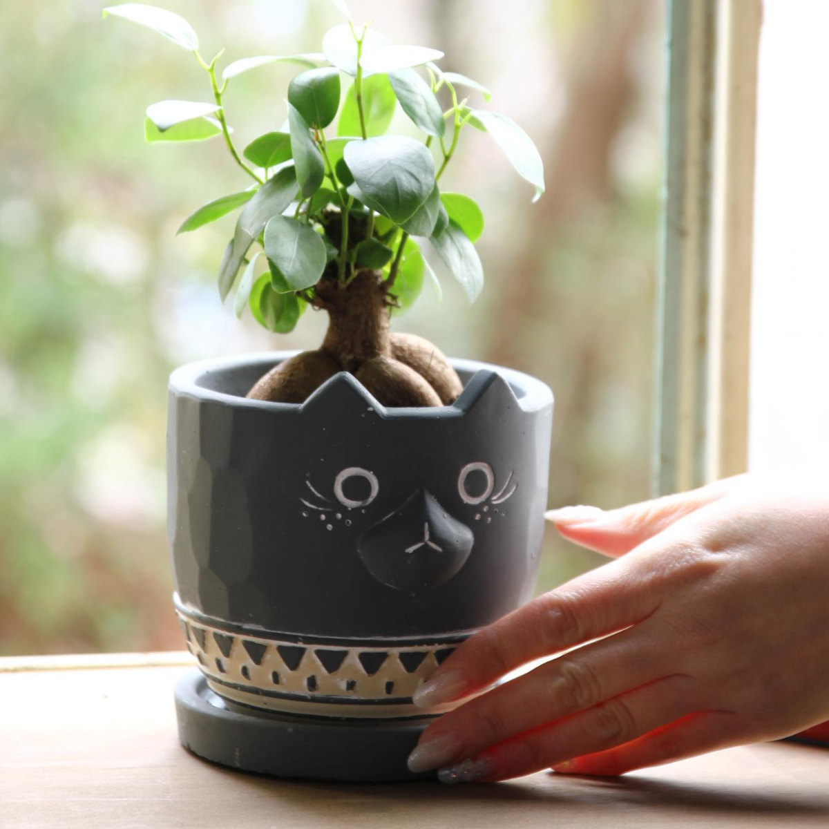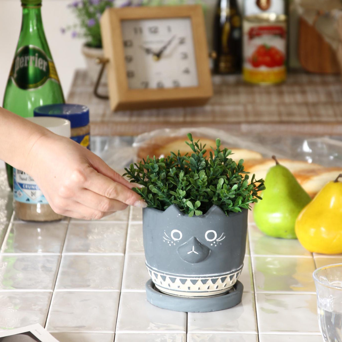 北欧風にデザインされたネコの顔がモチーフになったプランターです。シンプルな色合いなので、インテリアに馴染みやすく、どんな植物も引き立ててくれます。ちょっとしたスペースに置くことができるサイズで、玄関先でゲストをお出迎えしたり、室内に置いて自分だけの癒しの空間を作ることができます。