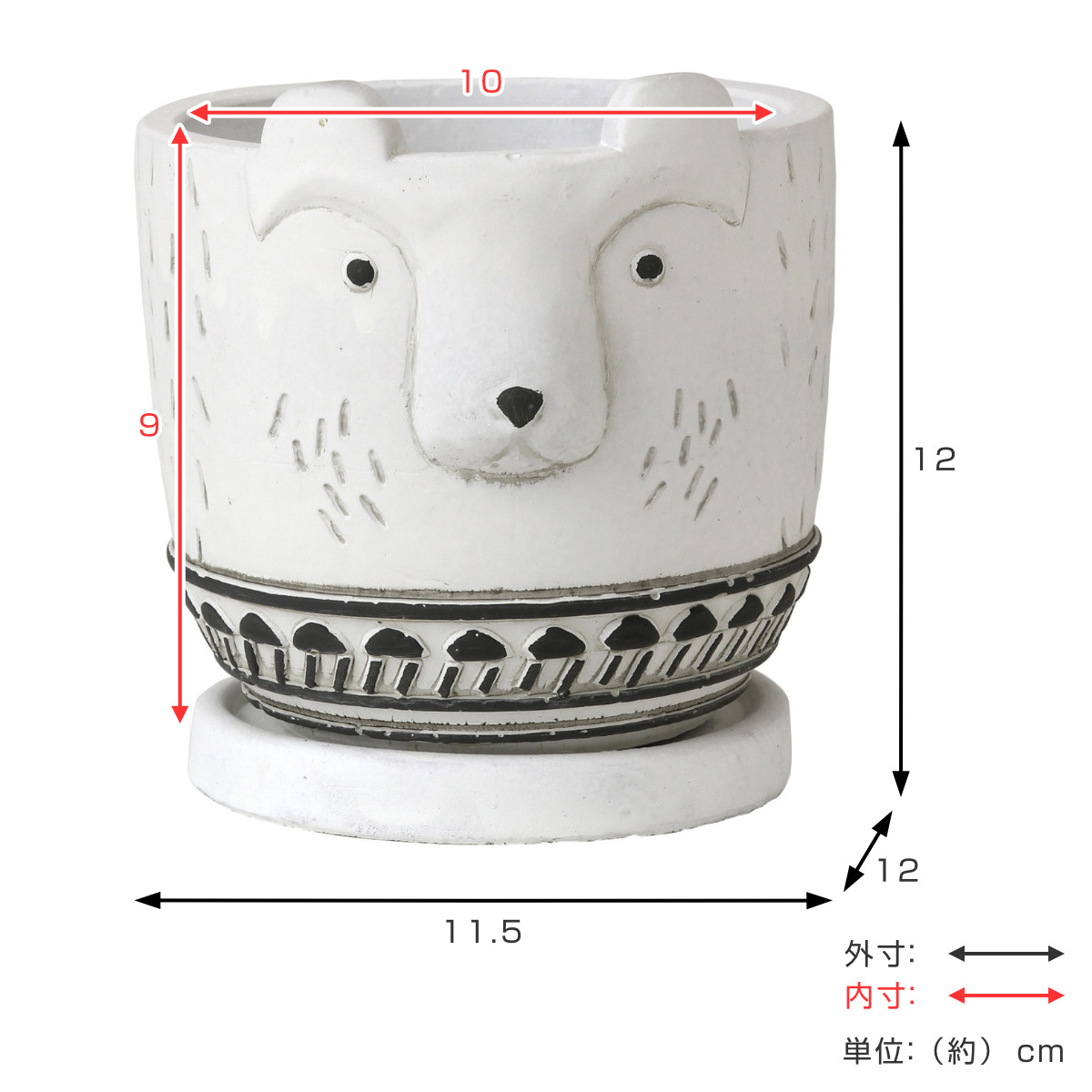 植木鉢 アニマルプランター ホワイトベアー ( プランター プラントポット 植物用ポット 鉢 花器 鉢カバー ポット セメント 3号鉢 丸 白くま 植木鉢カバー ガーデンポット 花 水抜穴付き 受け皿 植物 観葉植物 園芸 直植え おしゃれ )