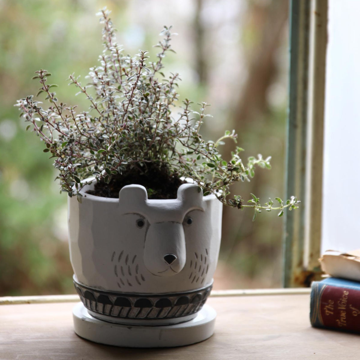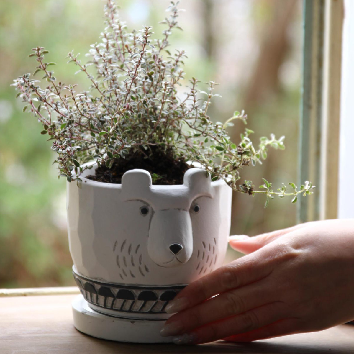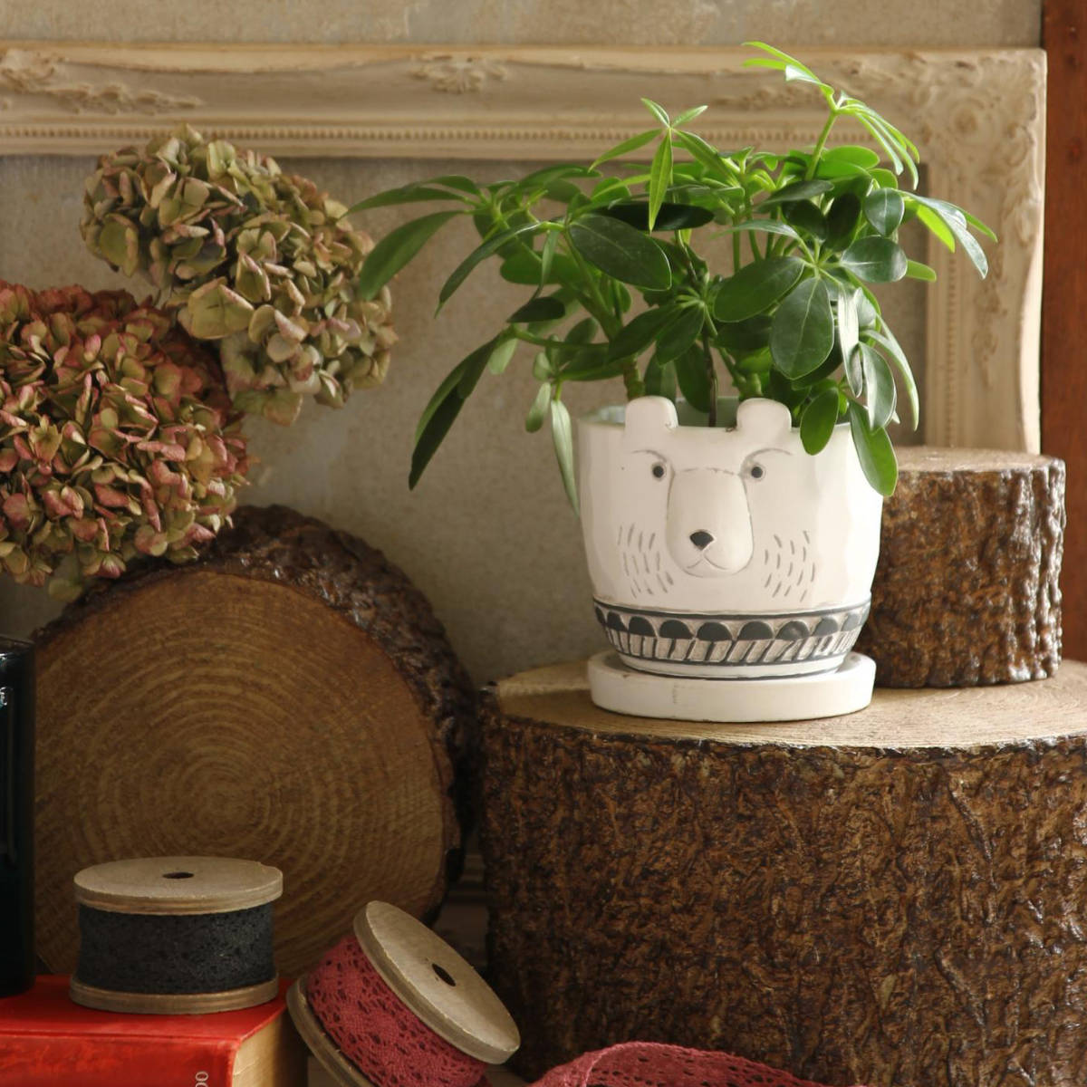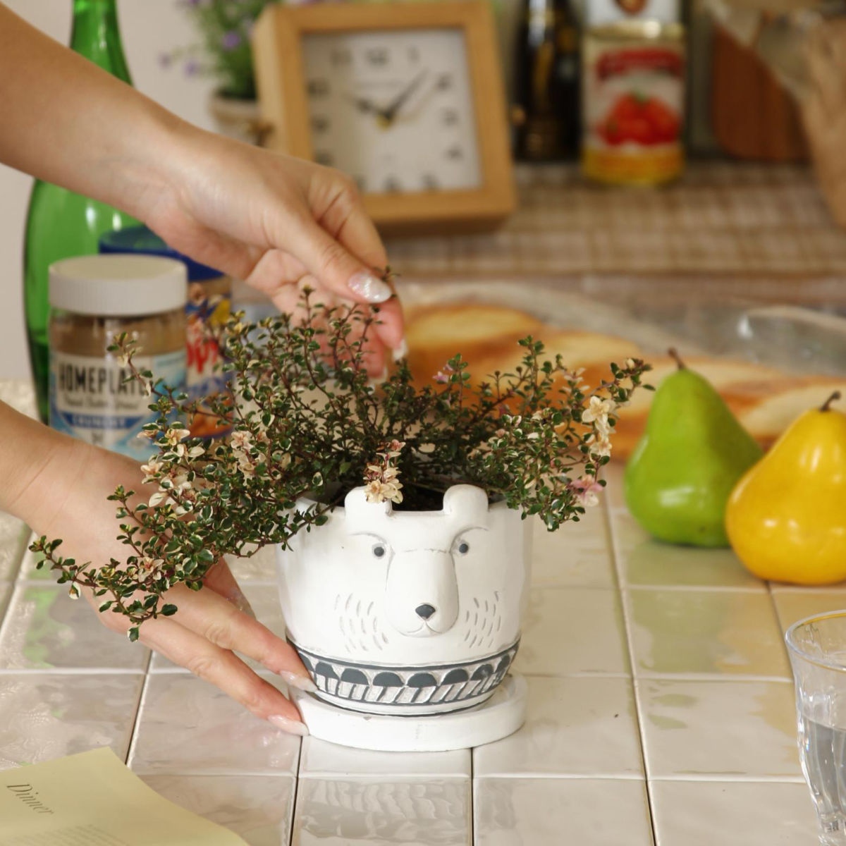 北欧風にデザインされたシロクマの顔がモチーフになったプランターです。シンプルな色合いなので、インテリアに馴染みやすく、どんな植物も引き立ててくれます。ちょっとしたスペースに置くことができるサイズで、玄関先でゲストをお出迎えしたり、室内に置いて自分だけの癒しの空間を作ることができます。