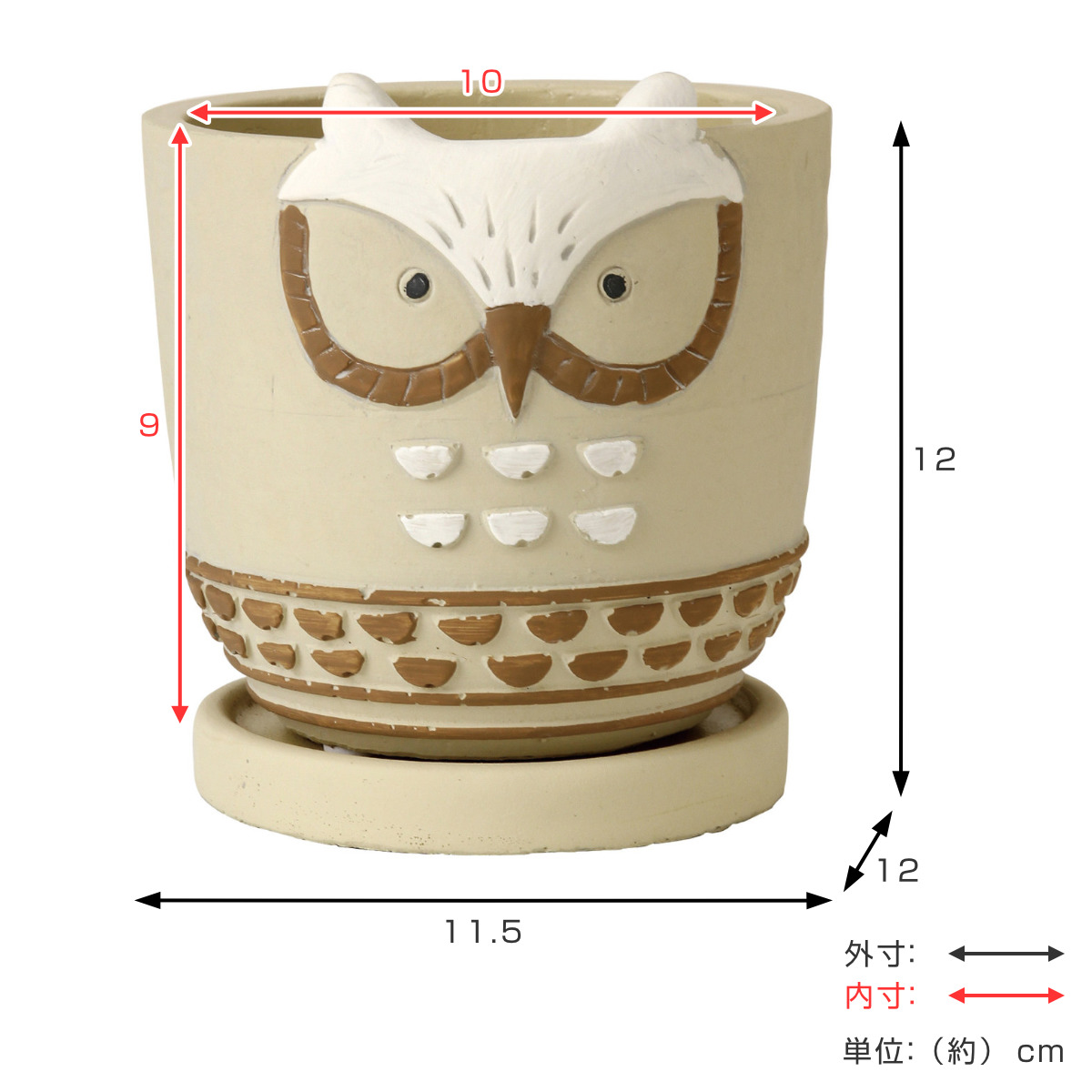 植木鉢 アニマルプランター フクロウ ( プランター プラントポット 植物用ポット 鉢 花器 鉢カバー ポット セメント 3号鉢 丸 ふくろう 植木鉢カバー ガーデンポット 花 水抜穴付き 受け皿 植物 観葉植物 園芸 直植え おしゃれ )