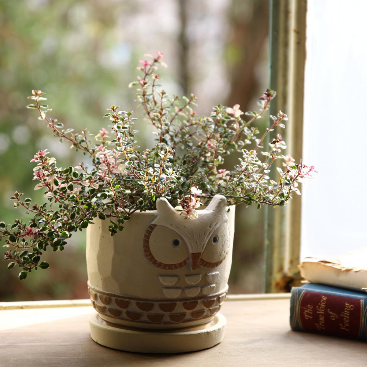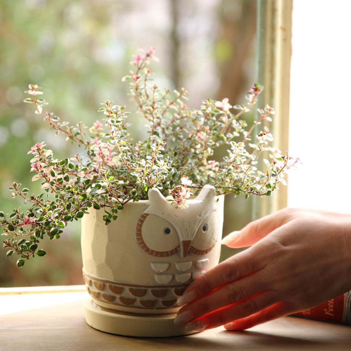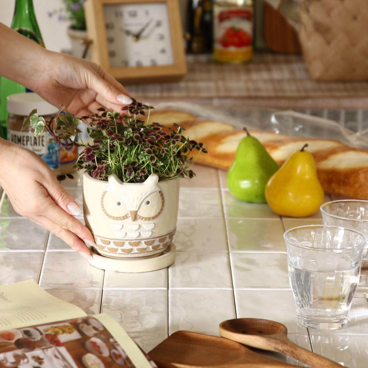 北欧風にデザインされたフクロウの顔がモチーフになったプランターです。シンプルな色合いなので、インテリアに馴染みやすく、どんな植物も引き立ててくれます。ちょっとしたスペースに置くことができるサイズで、玄関先でゲストをお出迎えしたり、室内に置いて自分だけの癒しの空間を作ることができます。