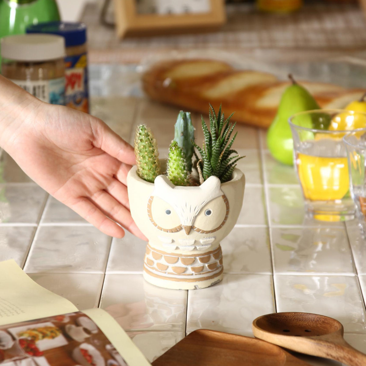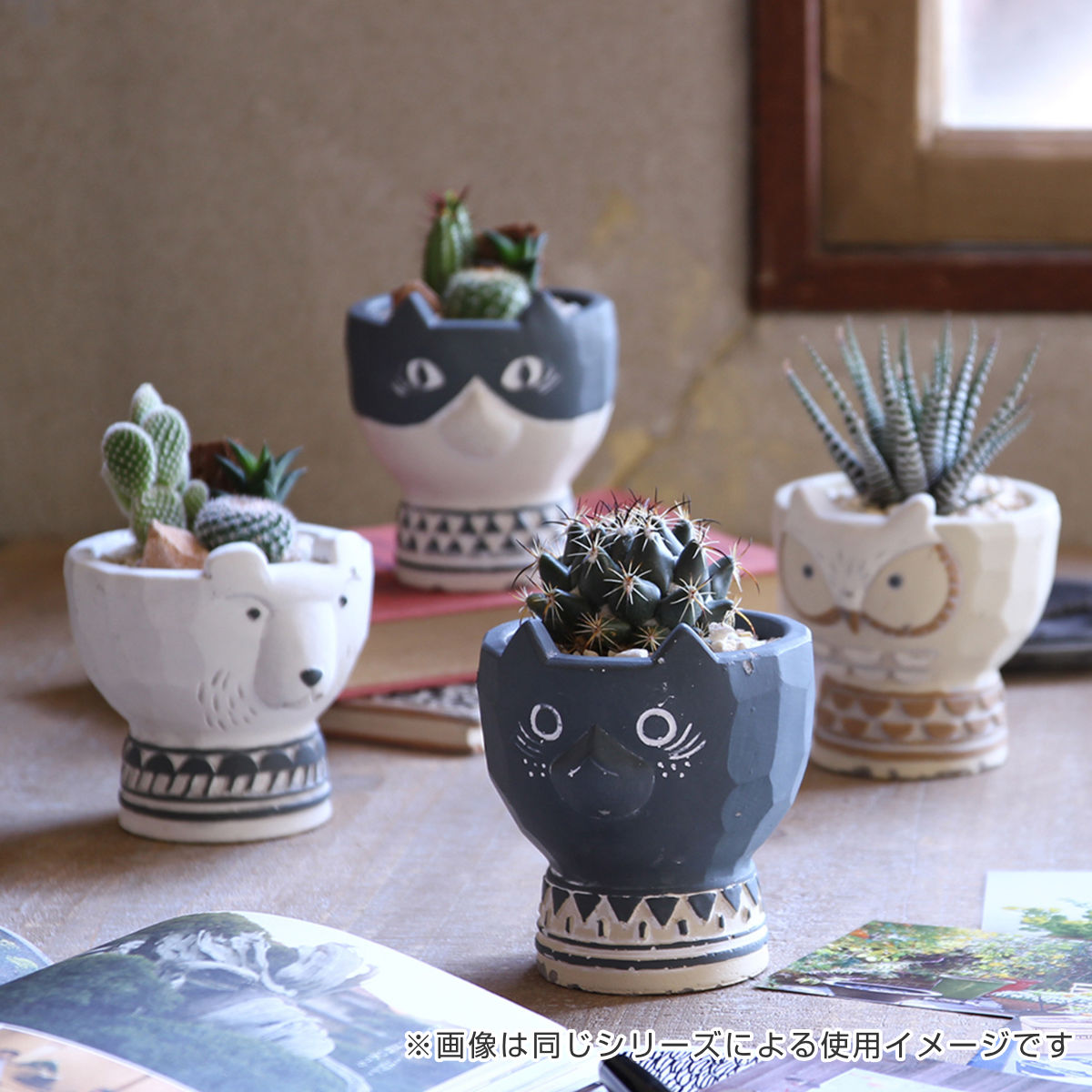 北欧風にデザインされたフクロウの顔がモチーフになったポットです。シンプルな色合いなので、インテリアに馴染みやすく、どんな植物も引き立ててくれます。ちょっとしたスペースに置くことができるサイズで、玄関先でゲストをお出迎えしたり、室内に置いて自分だけの癒しの空間を作ることができます。