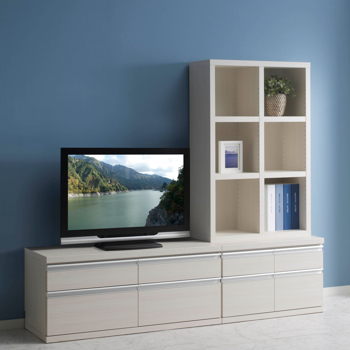 単品使用やミドルタイプ同士で並べたり、ロ―タイプを上に設置したり、ローチェストの上に設置ができます。お部屋に合わせて別売りアイテムと組み合わせて、レイアウトをお楽しみください。