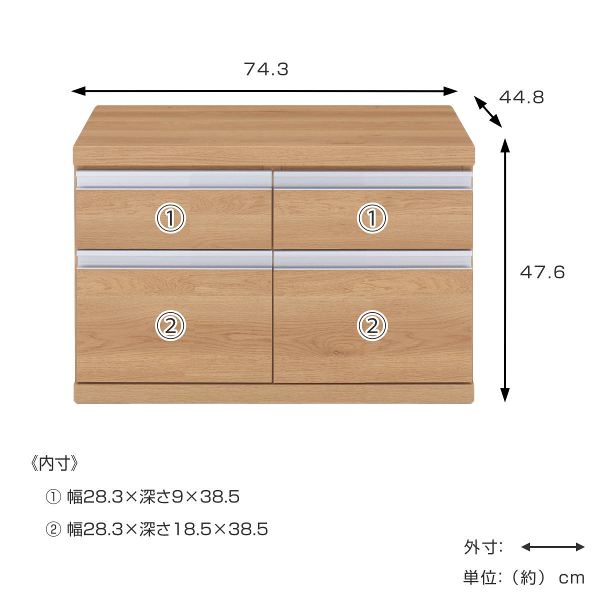 | サイズ | 約 幅74.3×奥行44.8×高さ47.6(cm) |