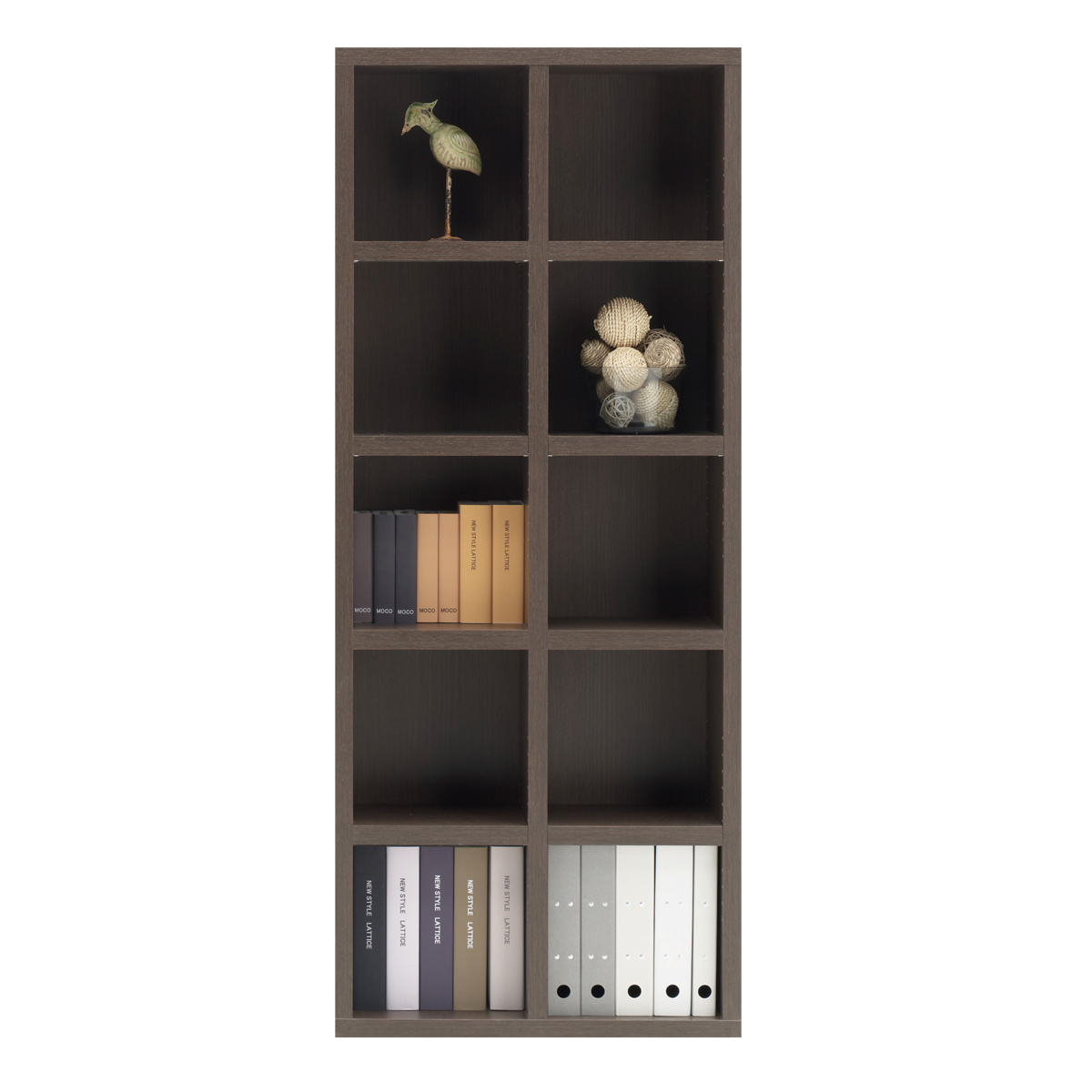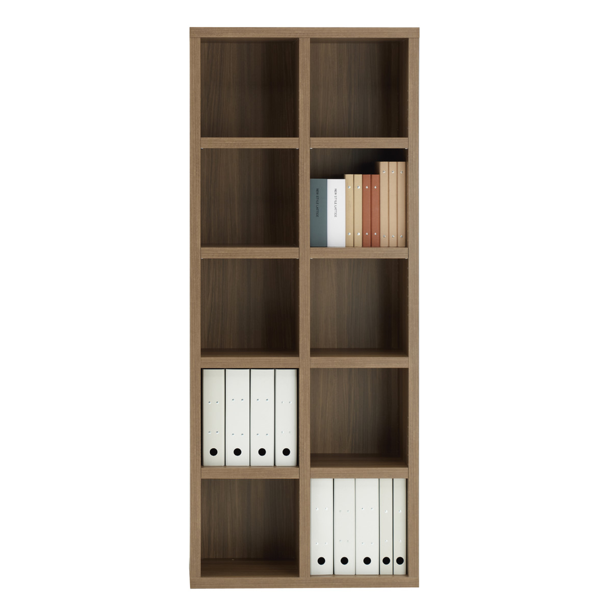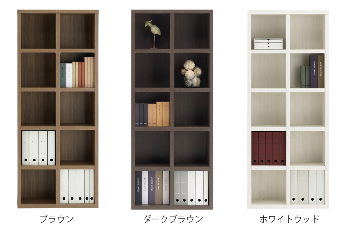 本棚 幅74.3cm 日本製 ブックシェルフ 5段2列 シンプルデザイン ( ラック 棚 シェルフ 収納 間仕切り 完成品 ディスプレイラック 飾り棚 家具 A4 壁面収納 シンプル ) 【ブラウン】