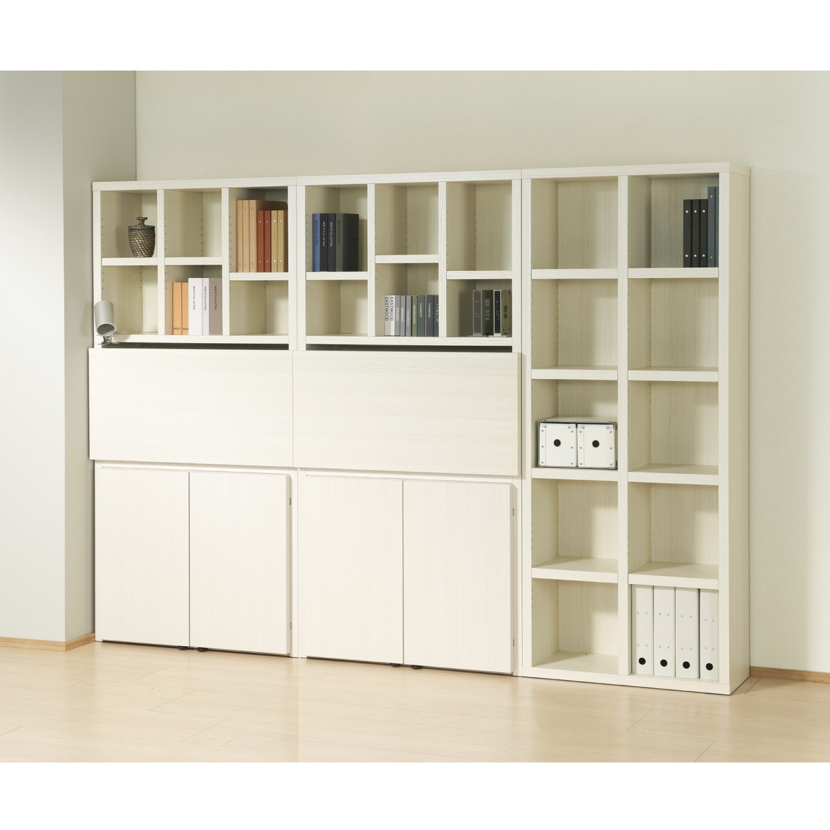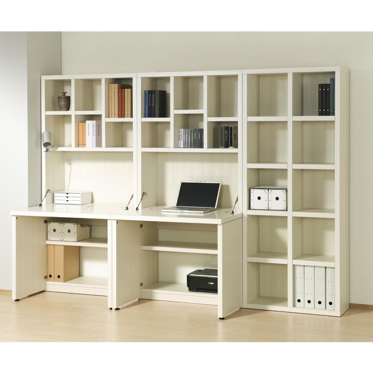 高さを調節できる可動棚付きで、ムダなく収納していただけます。棚板を等間隔に付けた際、A4ファイルの5段2列収納が可能です。