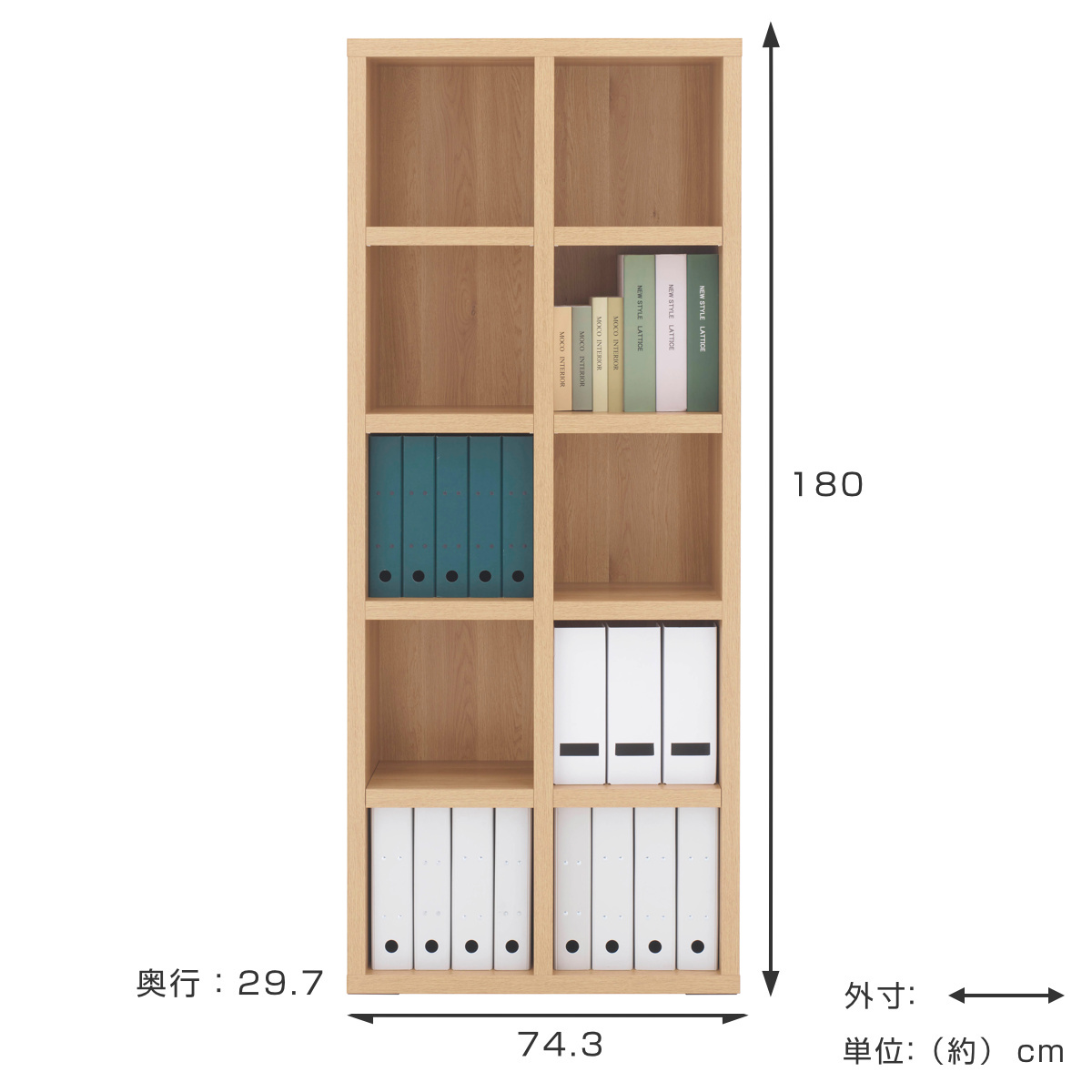 無駄を省いたシンプルなブックシェルフ 約幅74.3cm 5段2列タイプ