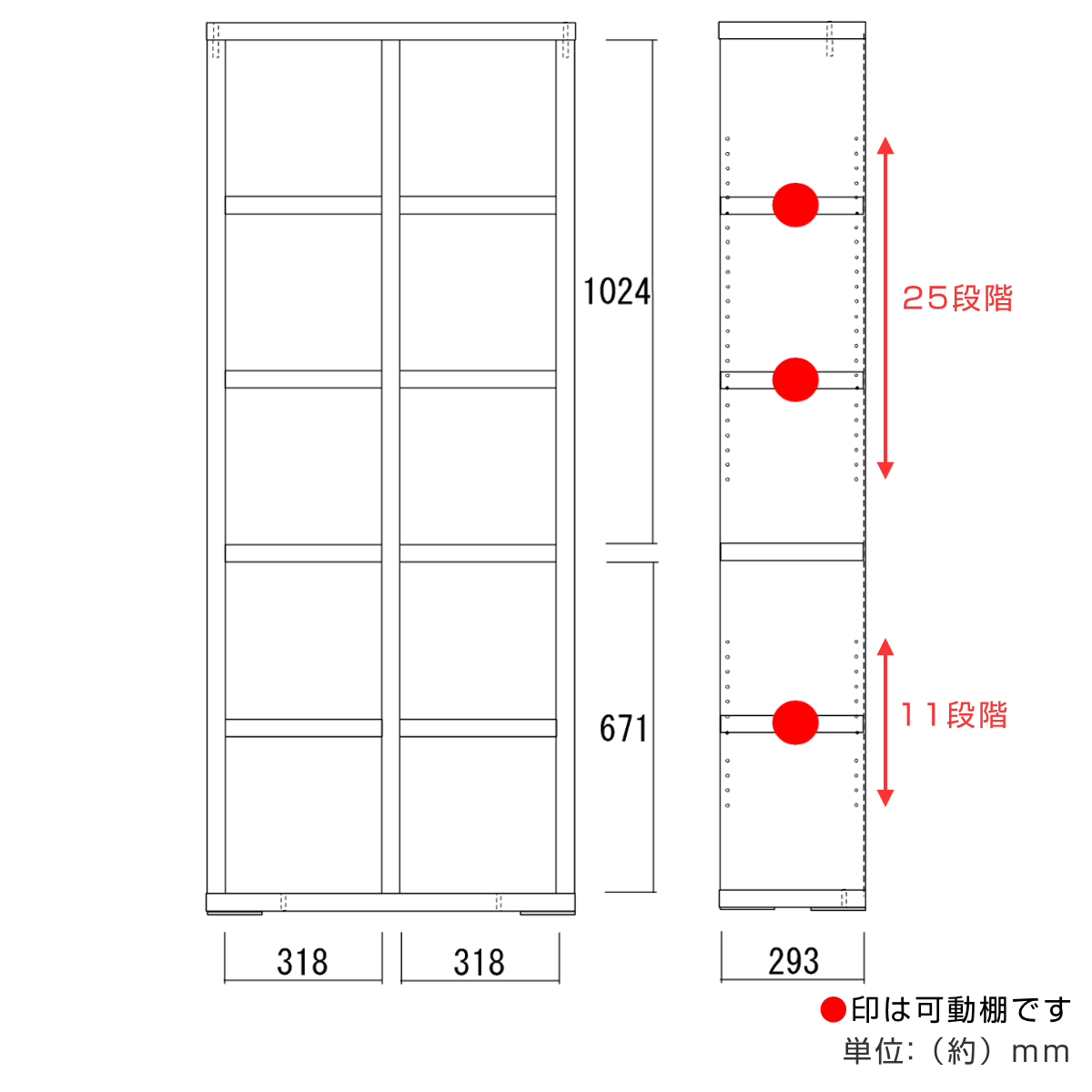 【可動棚6枚:上段・25段階/下段・11段階】