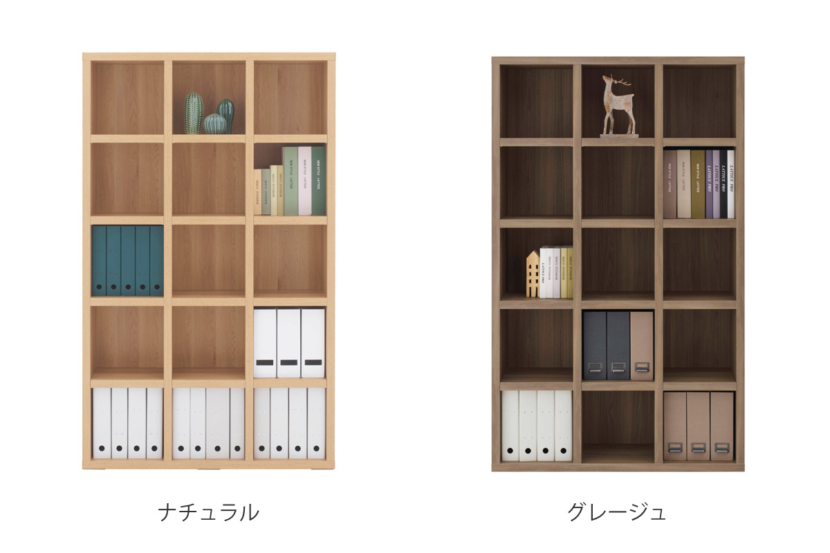 本棚 幅109.6cm 日本製 ブックシェルフ 5段3列 シンプルデザイン ( ラック 棚 シェルフ 収納 間仕切り 完成品 ディスプレイラック 飾り棚 家具 A4 壁面収納 シンプル ) 【グレージュ】