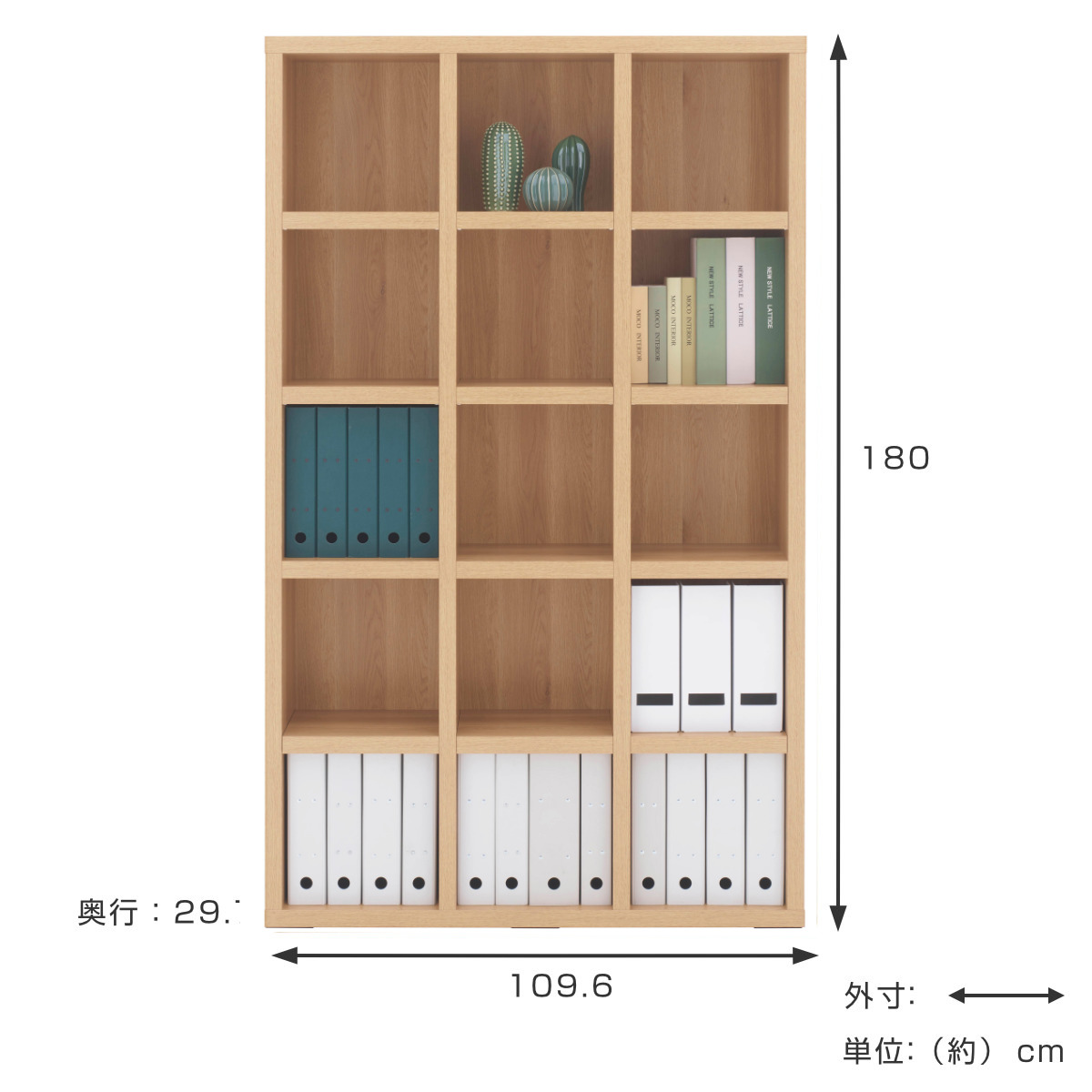 無駄を省いたシンプルなブックシェルフ 約幅10.96cm 5段3列タイプ