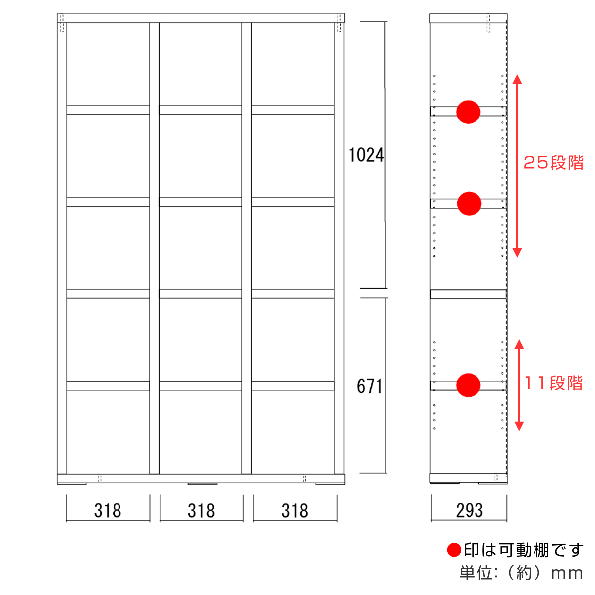 【可動棚9枚:上段・25段階/下段・11段階】