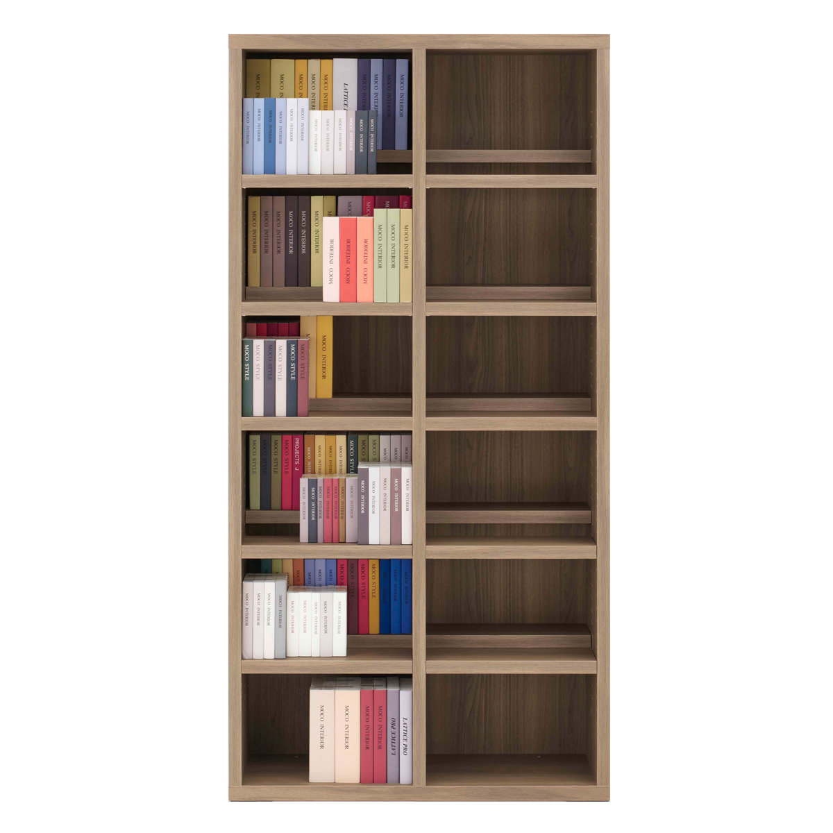 前後に分かれた2枚の棚板は、約3cmピッチで可動することができます。前の棚板を1段~2段下げる事により後に収納した物の背表紙も見え、大量の収納が可能です。