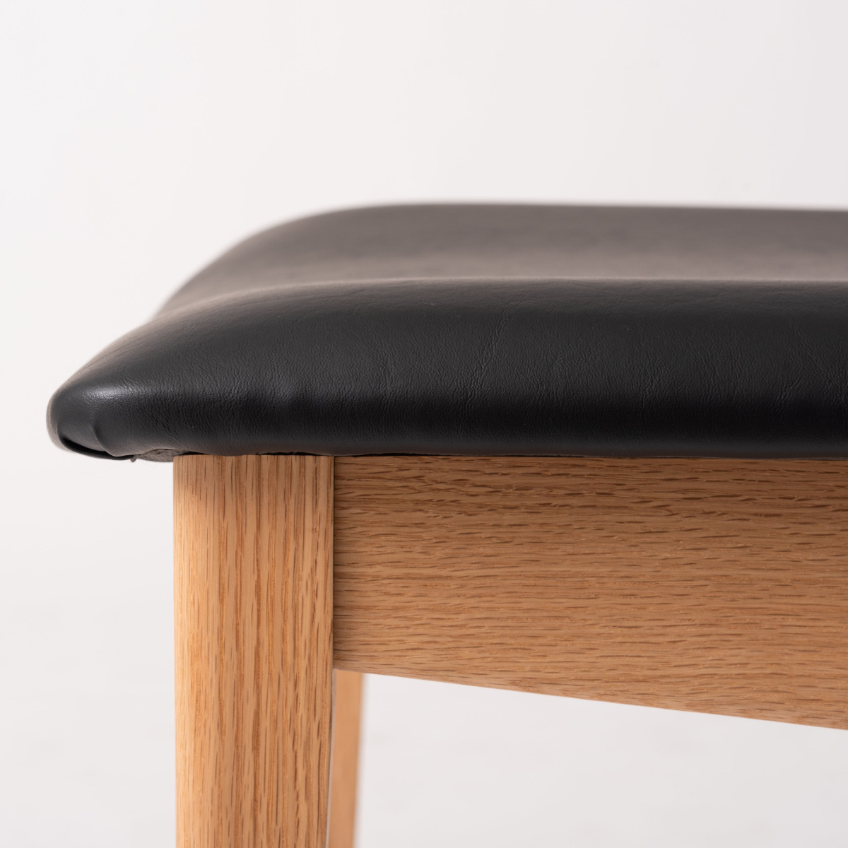 座面はで高級感のあるブラックカラーの合皮素材です。食事中こぼしてもさっと拭くだけ、本革と違いお手入れが簡単です。