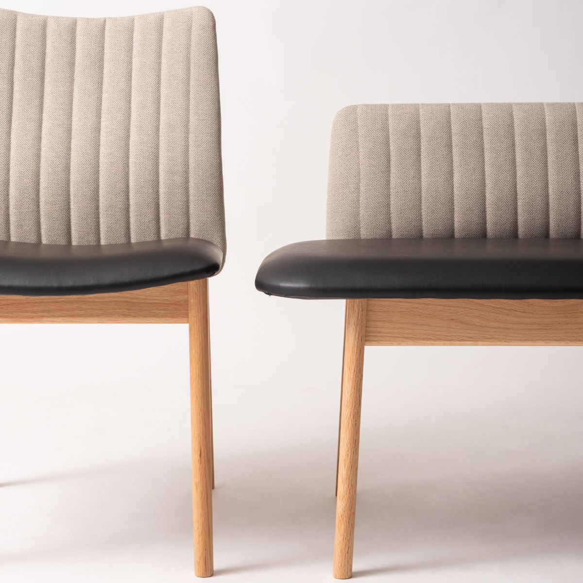 背もたれは細かいヘンリボーン柄に編まれた生地を使用しています。すっきりとしたフォルムのなかに、暖かみを感じられるデザインです。