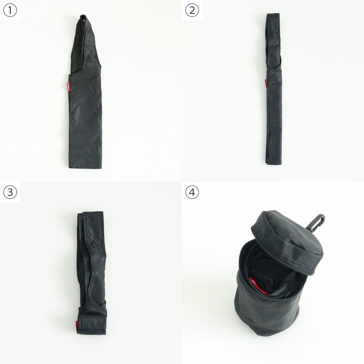 収納ポーチに入れると、鞄などに入れても邪魔にならないコンパクトサイズになります。上部にフックが付いているので、ショルダーバッグやリュックなどにも引っ掛けられます。