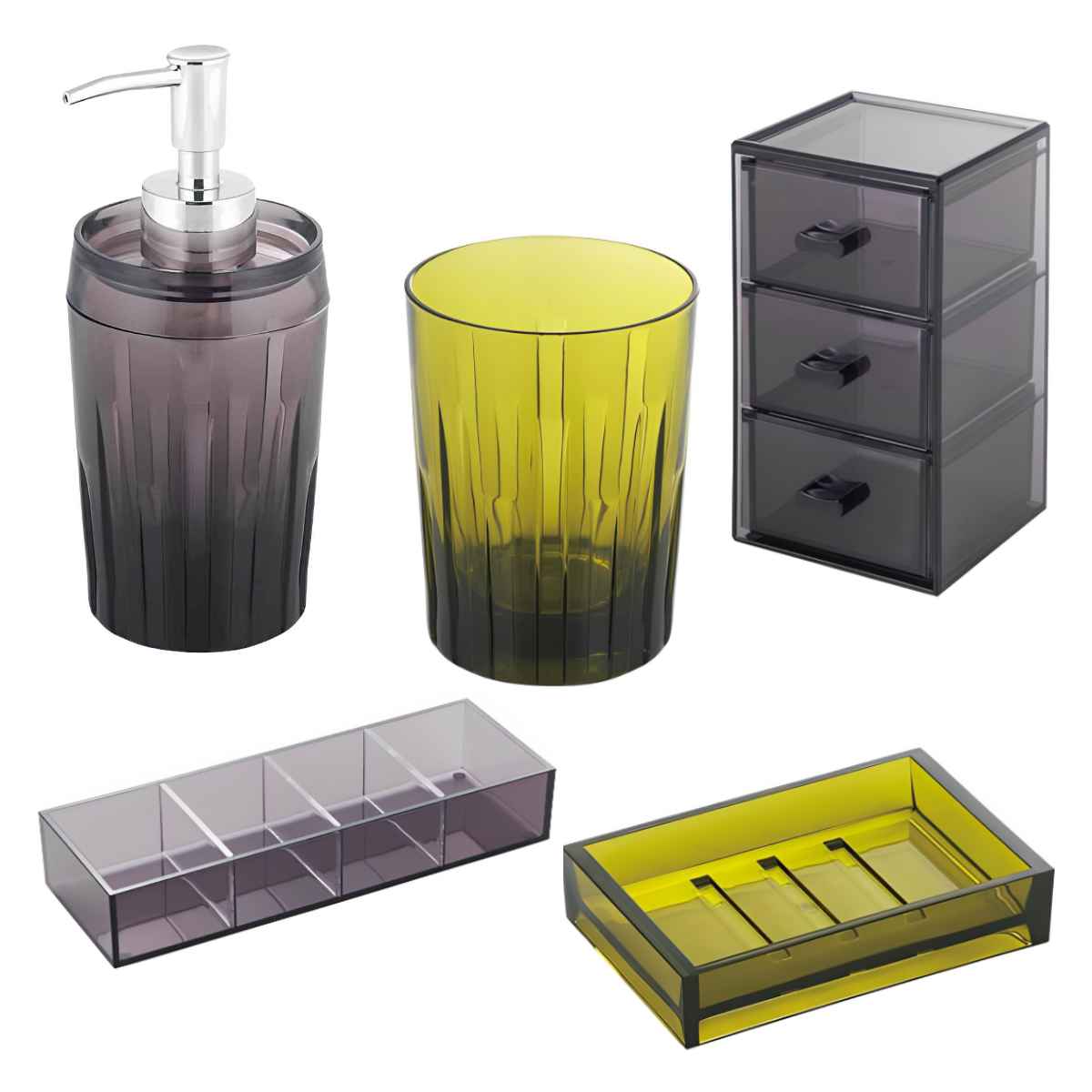 シックで深みのあるカラーが、大人っぽく独特な雰囲気を演出する「ファセタ」シリーズです。ディスペンサー、ウォーターカップ、ソープディッシュ、3段ボックス、トレーを揃えることで、統一感のある空間を演出できます。お好みのアイテムを組み合わせて、自分だけの特別な空間づくりをお楽しみください。