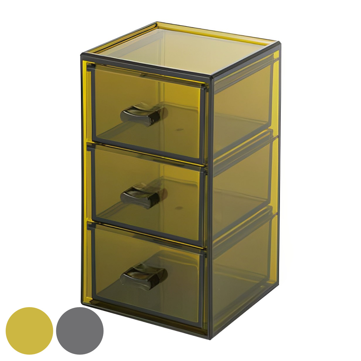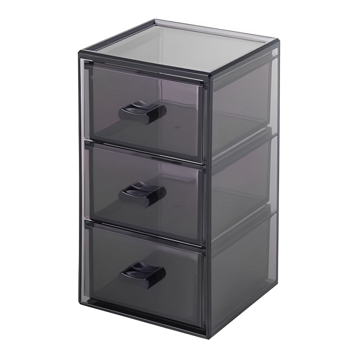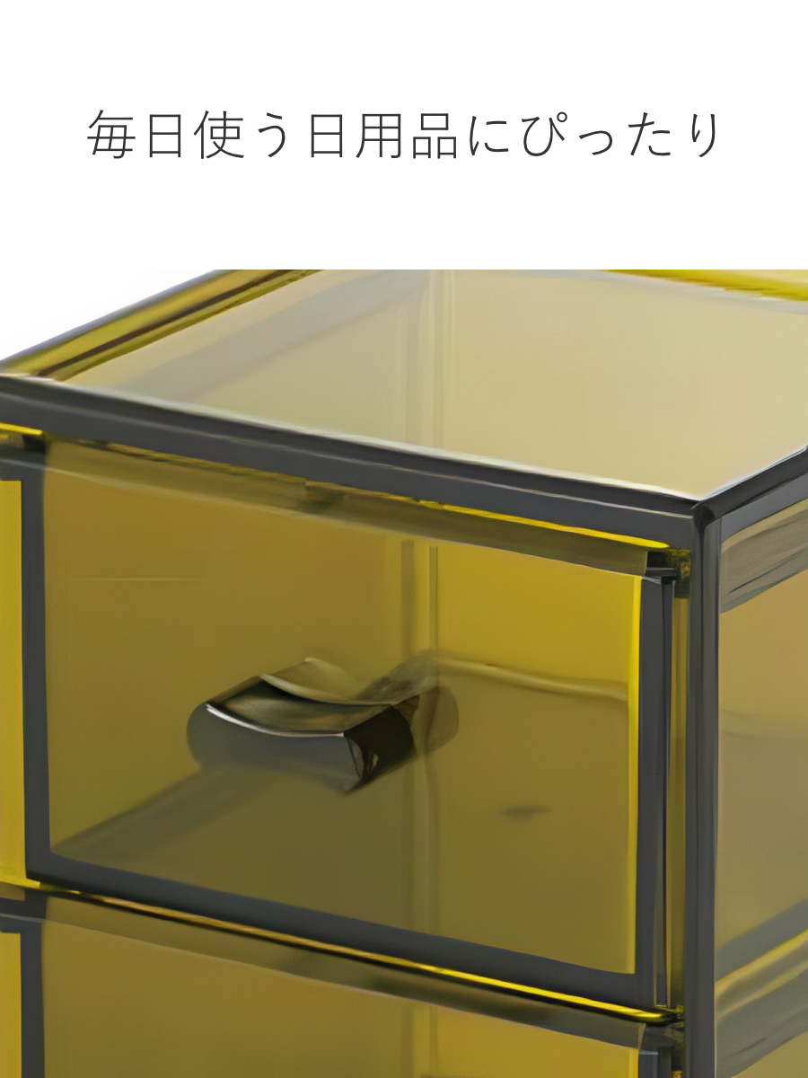 ガラスのような美しい透明感を持つ、小さくても引き出しやすい3段ボックスです。洗面に置いて指輪やピアスなどの小物収納に便利で、無くしがちなアクセサリーの整理に最適です。