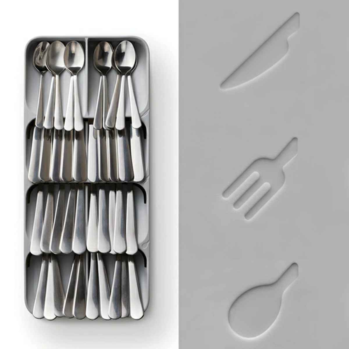 便利な仕切りと判別アイコンでカトラリーが混ざりにくい