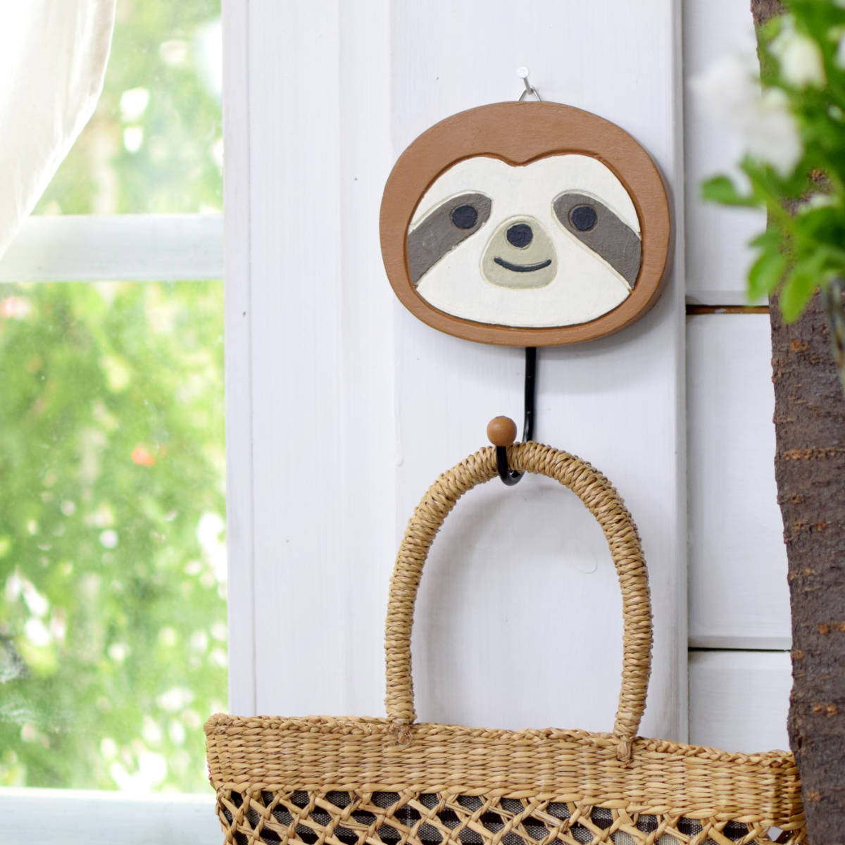 フック カービングフック 木製 ( ウォールフック 壁掛けフック 壁掛け 木製フック 壁 掛ける 壁面収納 玄関 吊り下げ 収納 アニマル 招き猫 天然木 アイアン 帽子掛け 鍵 キーフック バッグ 掛け 収納フック かわいい ) 【ナマケモノ】