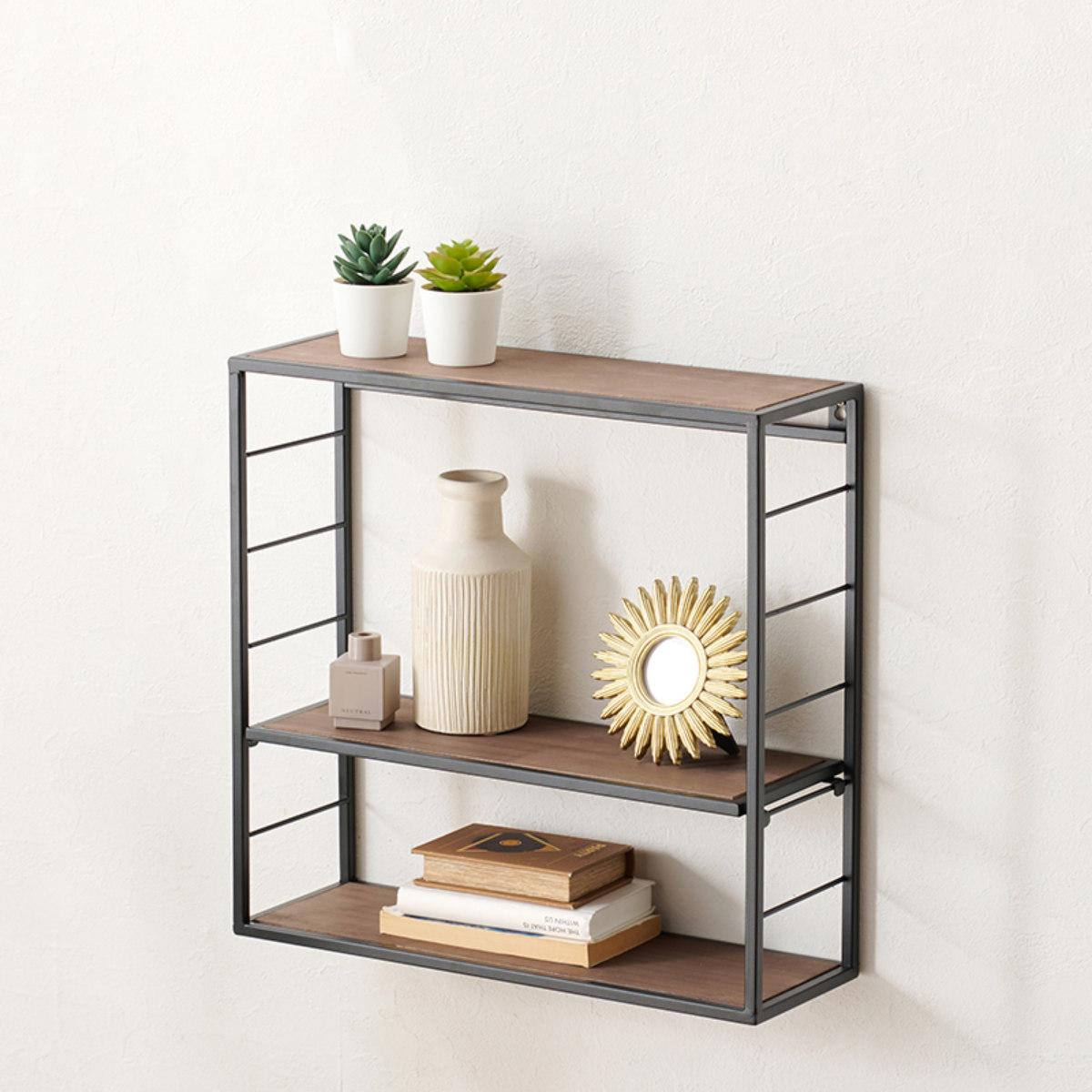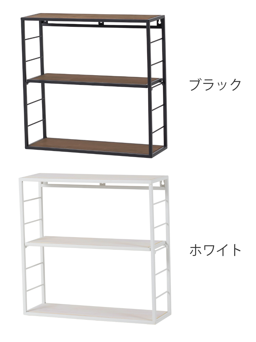 壁面収納 壁掛けラック 2段 ヴィンテージ調 幅45cm ( 壁面 収納 ラック シェルフ 壁 ディスプレイ 完成品 飾り棚 棚 天然木 アイアン ブラック ホワイト バイカラー シンプル ) 【ブラック】