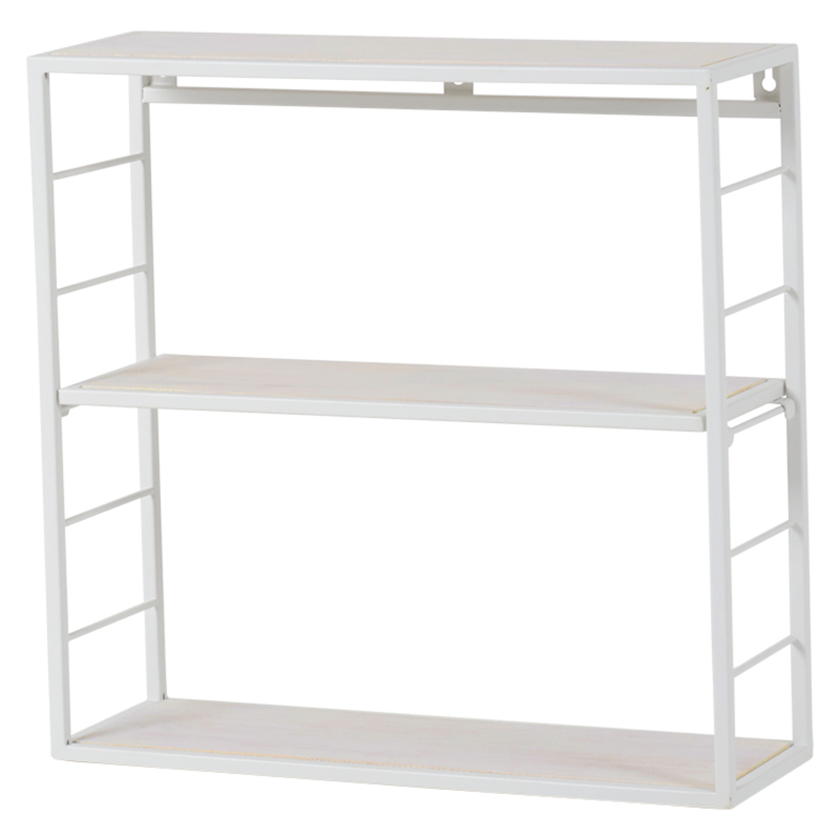 壁面収納 壁掛けラック 2段 ヴィンテージ調 幅45cm ( 壁面 収納 ラック シェルフ 壁 ディスプレイ 完成品 飾り棚 棚 天然木 アイアン ブラック ホワイト バイカラー シンプル ) 【ホワイト】