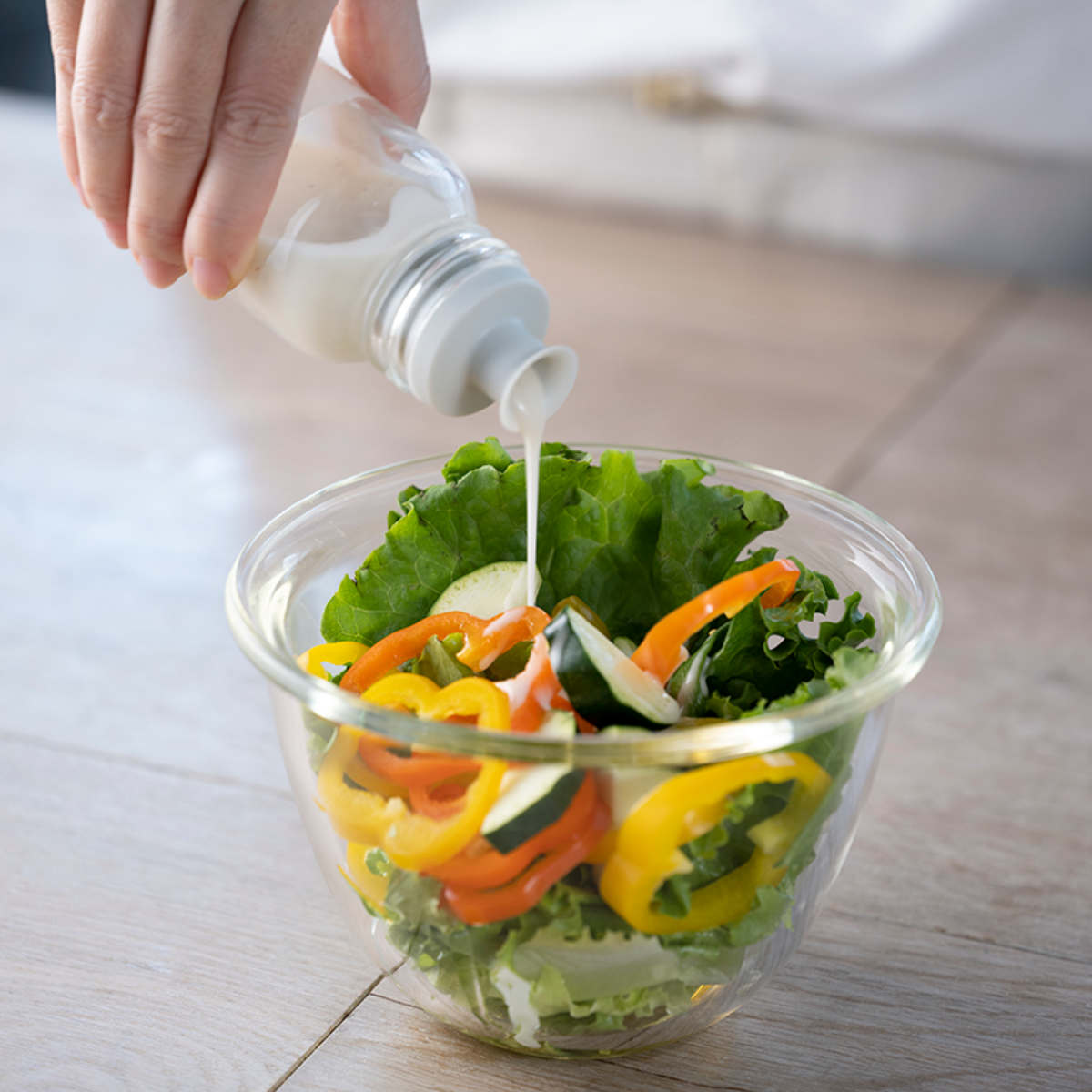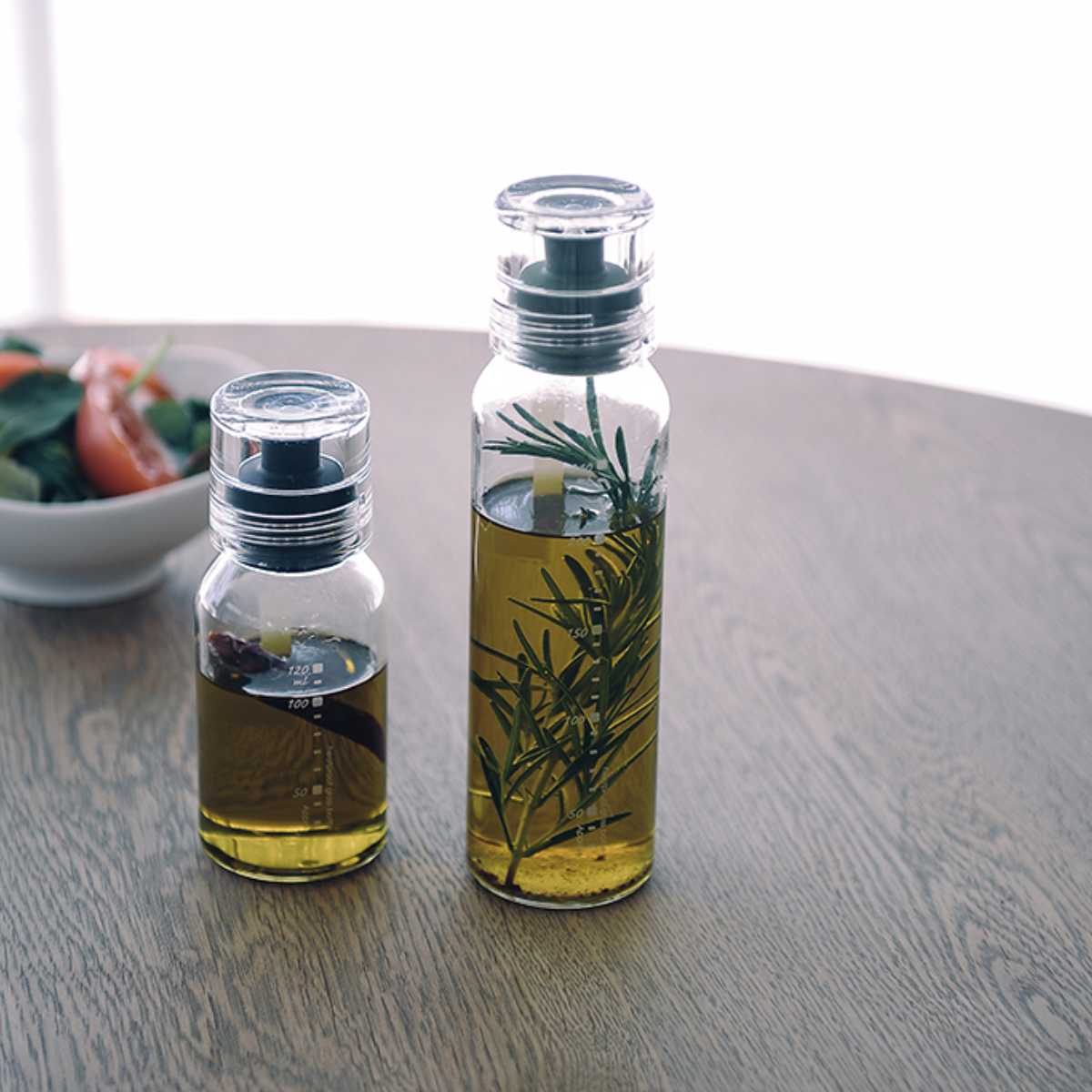 120mlと240mlの2サイズ展開です。1回分のドレッシングを作りたい場合や大量のドレッシングを作って保管したい場合など、用途にあったサイズを選んでいただけます。
