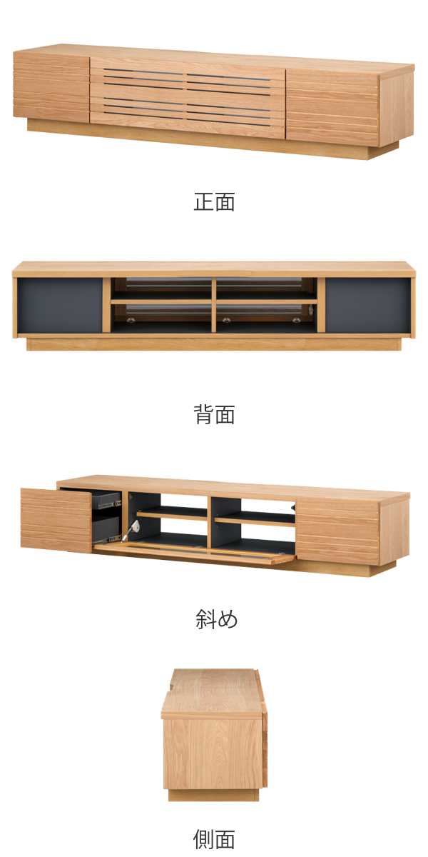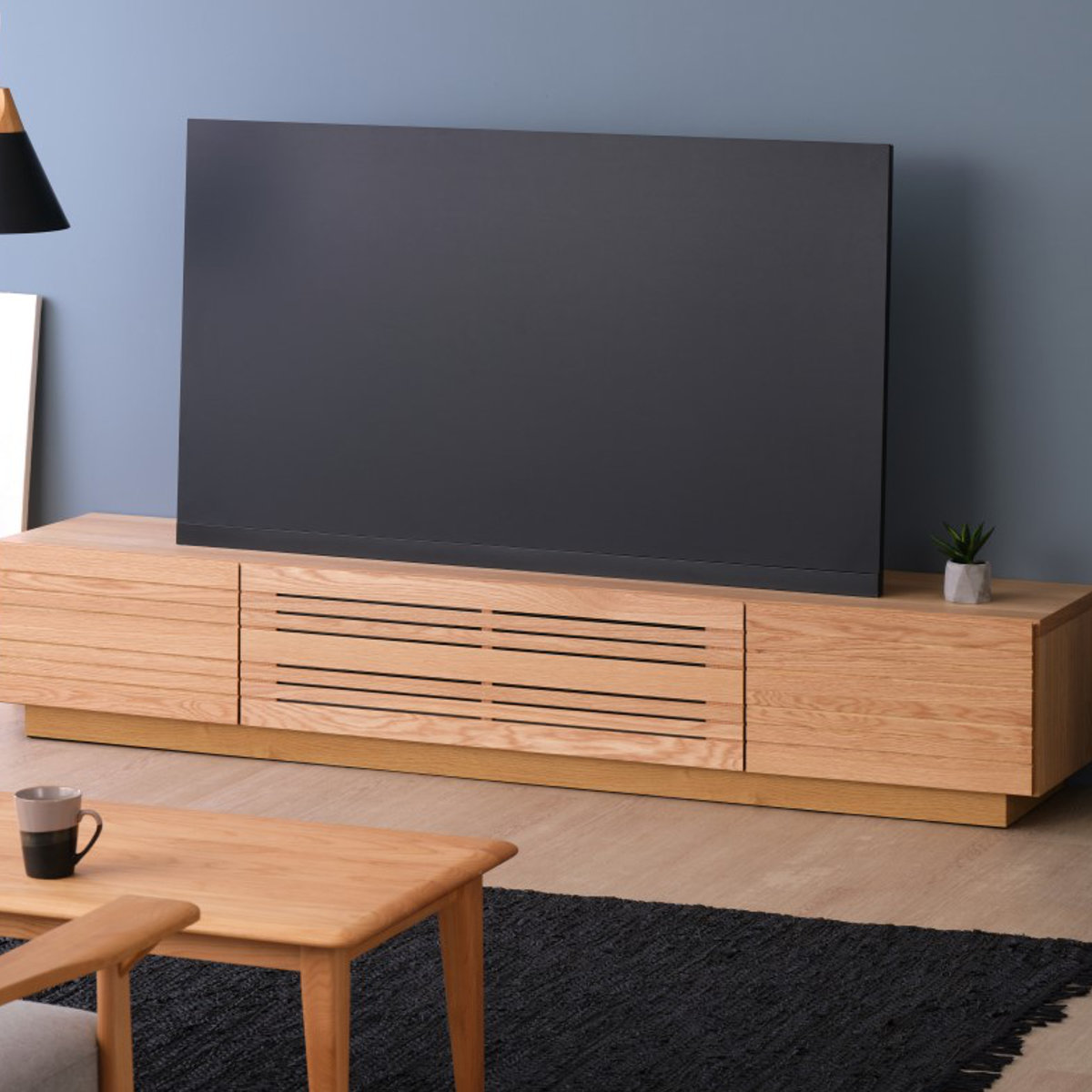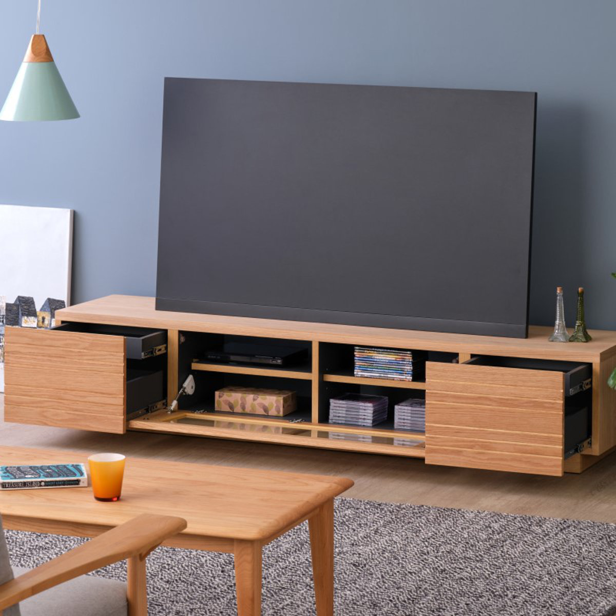 住空間にマッチするように考えられた、シンプルモダンなデザインのテレビ台です。木の温かみを感じるホワイトオーク材を使用しており、ナチュラルカラーはお部屋を明るく柔らかな印象にしてくれます。