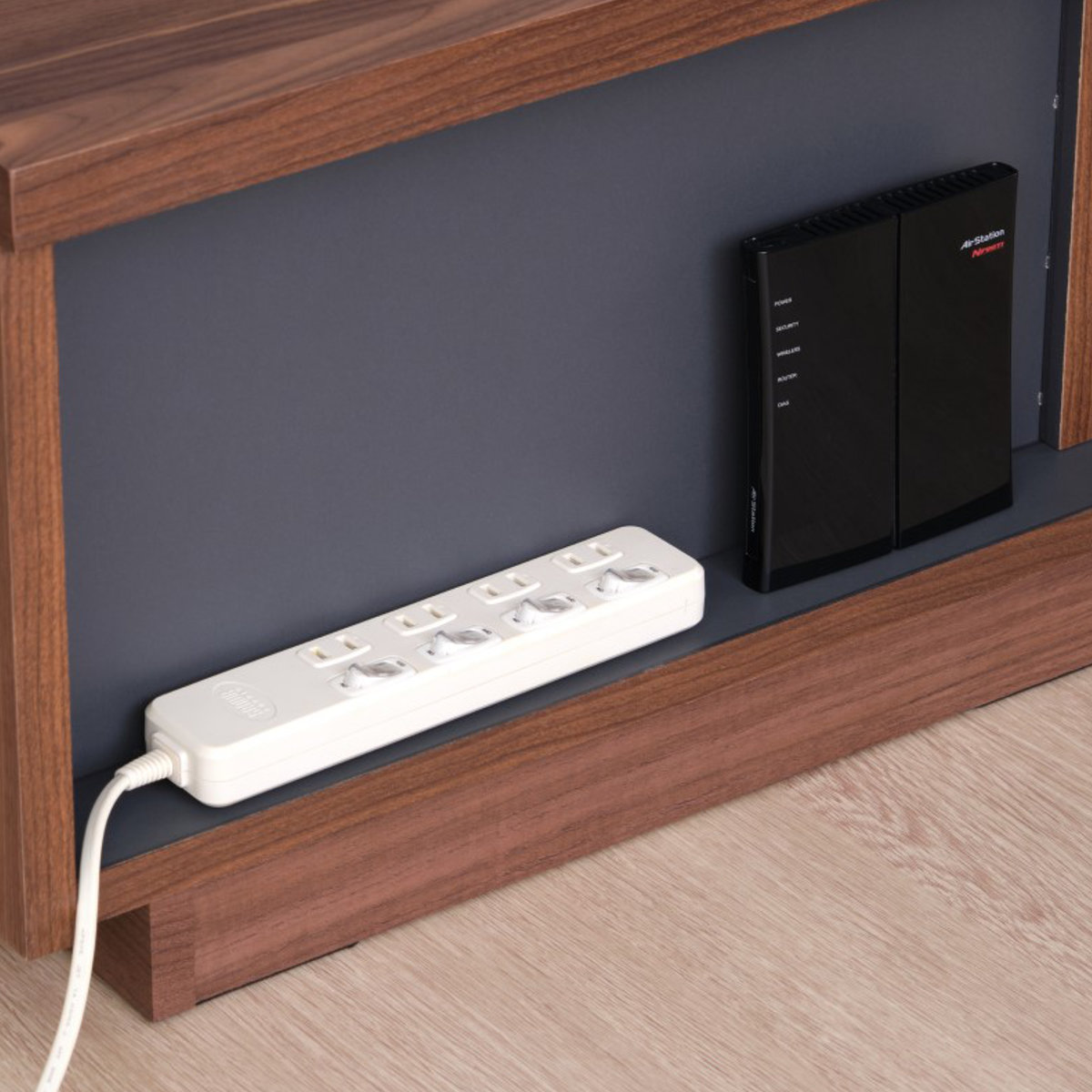 背面にはコードやコンセントタップをスッキリと収納できるスペース付きです。見た目もスマートに、空間を気持ちよくお使いいただけます。