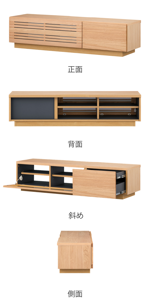 住空間にマッチするように考えられた、シンプルモダンなデザインのテレビ台です。木の温かみを感じるホワイトオーク材を使用しており、ナチュラルカラーはお部屋を明るく柔らかな印象にしてくれます。
