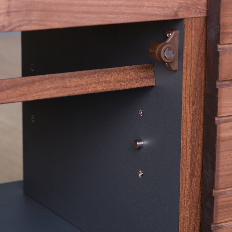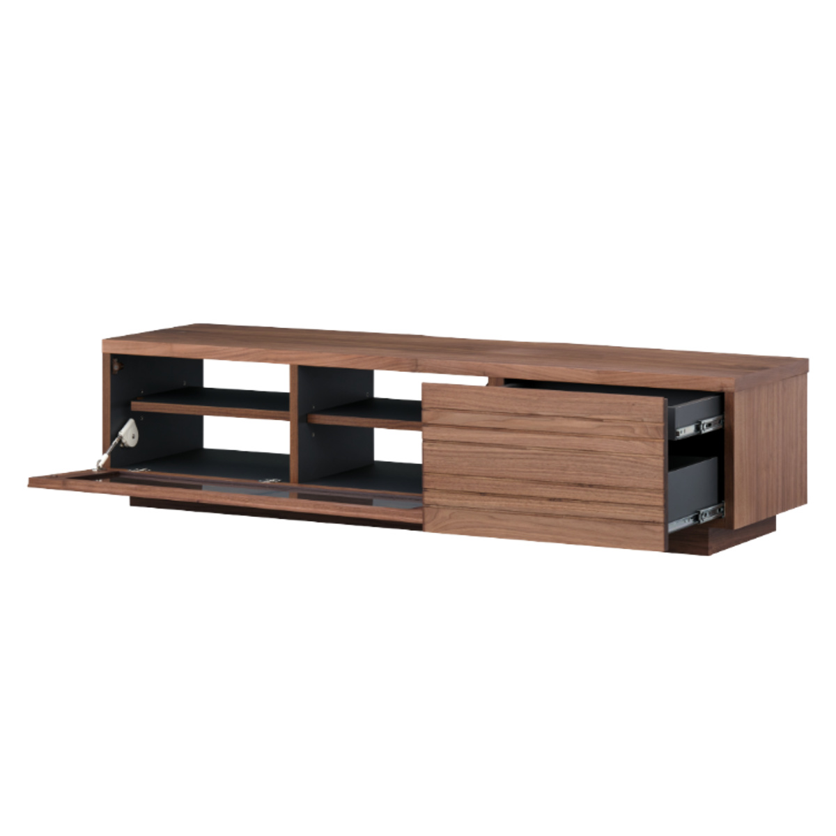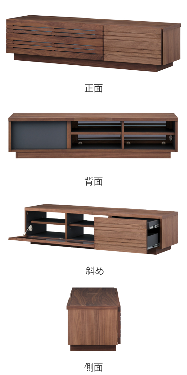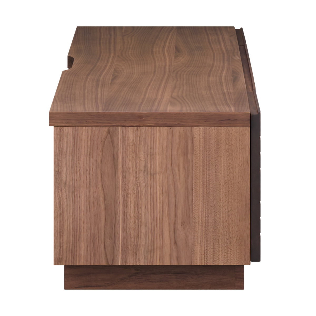 住空間にマッチするように考えられた、シンプルモダンなデザインのテレビ台です。木の温かみを感じるウォルナット材を使用しており、ブラウンカラーはお部屋の雰囲気を引き締め落ち着いた空間にしてくれます。