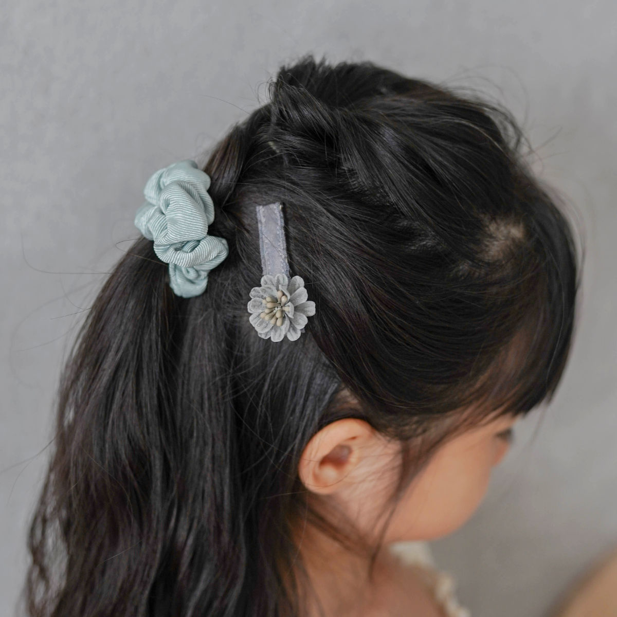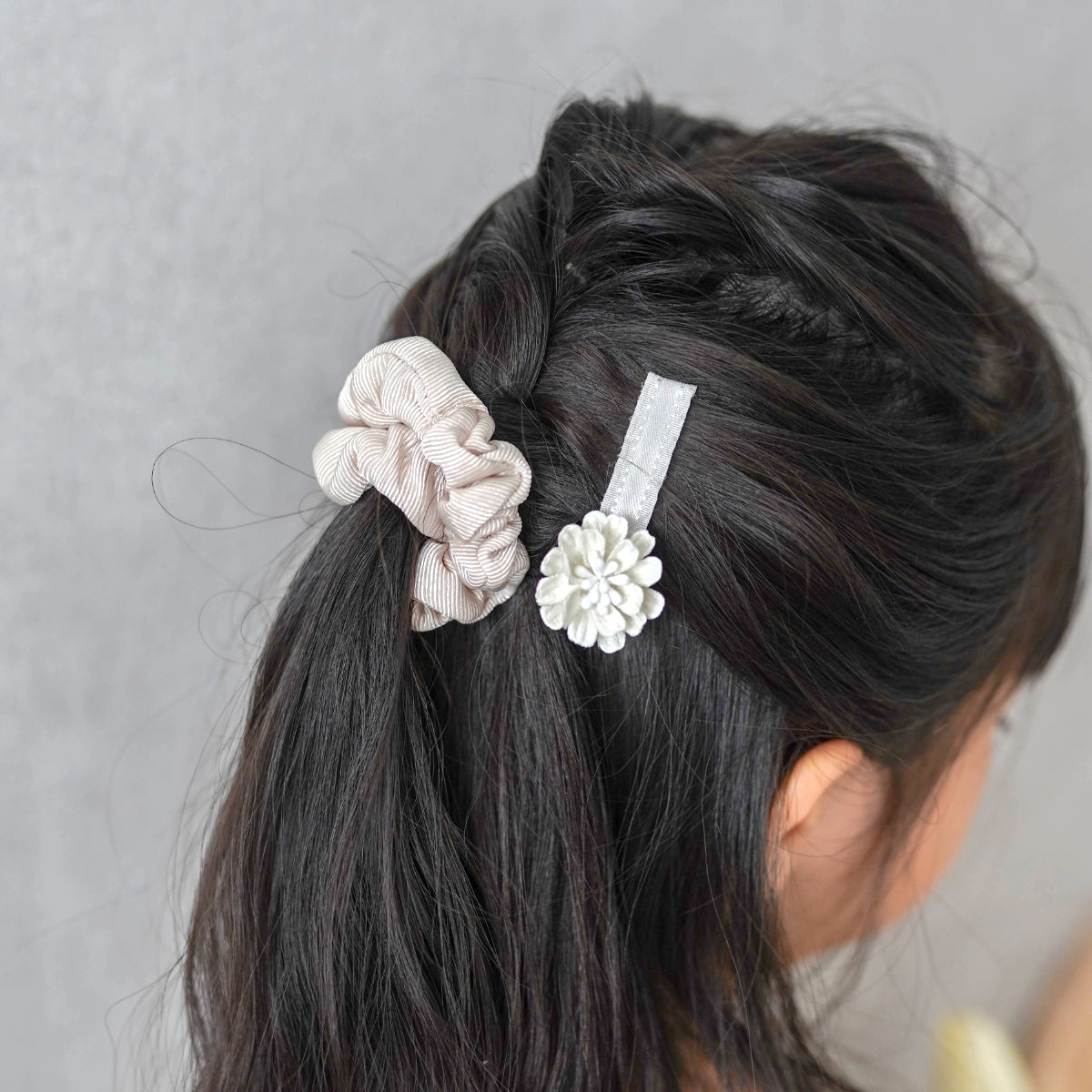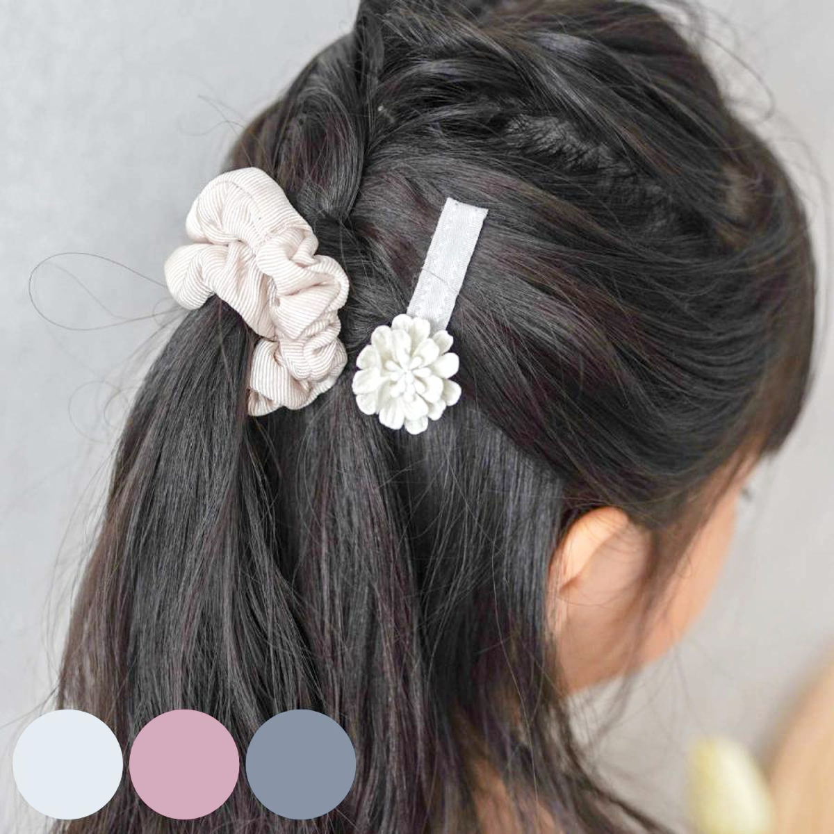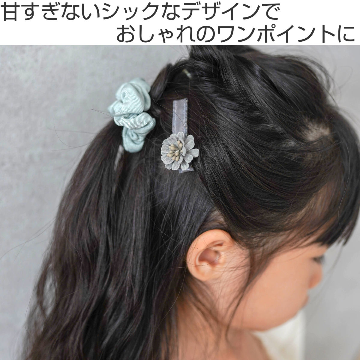 ヘアクリップ シュシュ くすみフラワークリップ&シュシュセット ベビー キッズ ギフト ( ヘアアクセサリー ヘアゴム セット 赤ちゃん 子ども かわいい 髪留め 髪飾り クリップ 韓国 女の子 プレゼント 出産祝い おしゃれ 発表会 ) 【グレー】