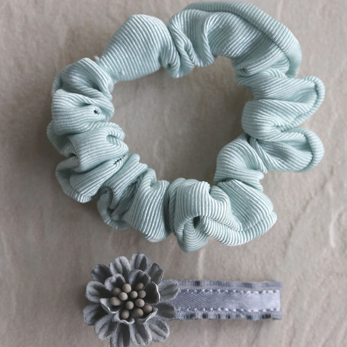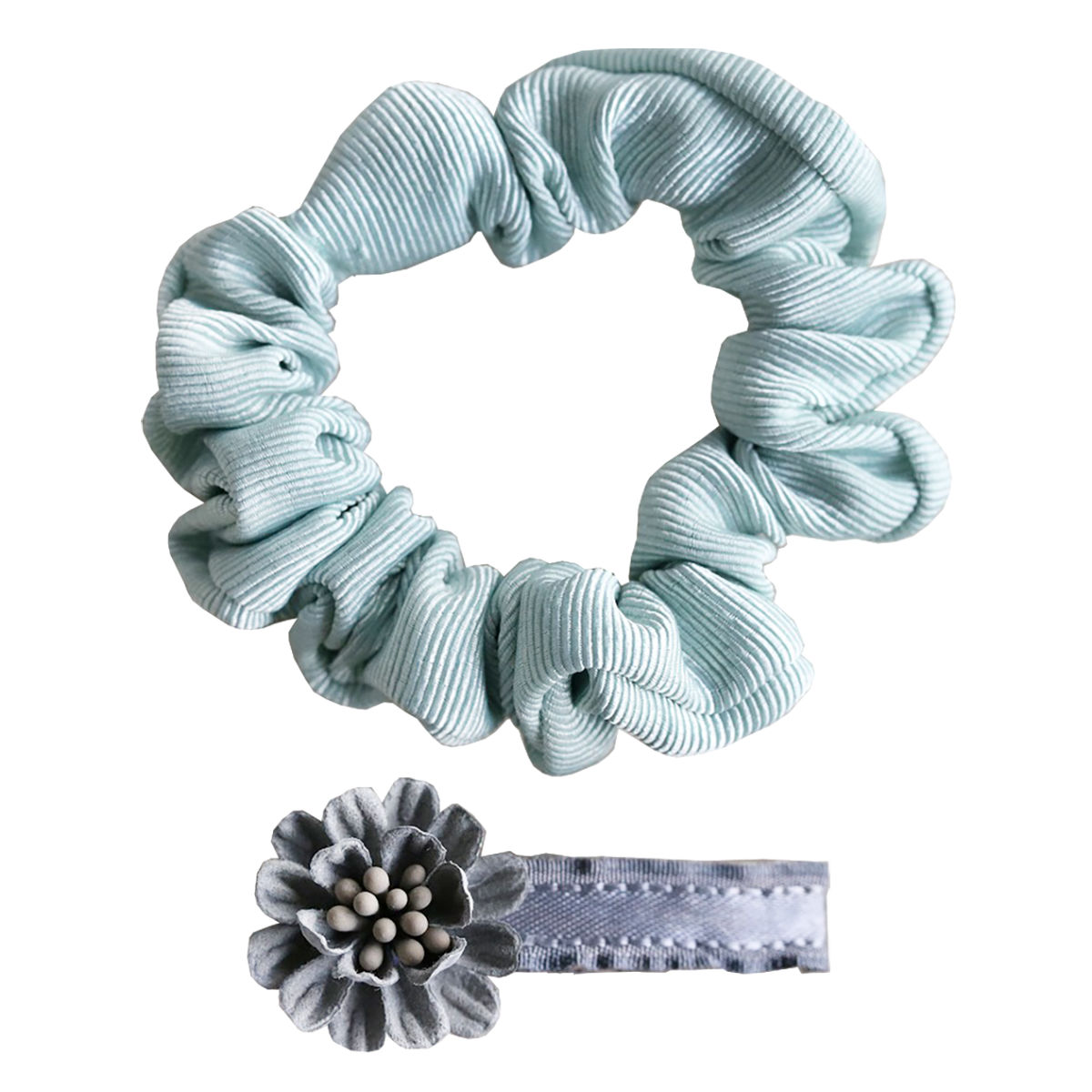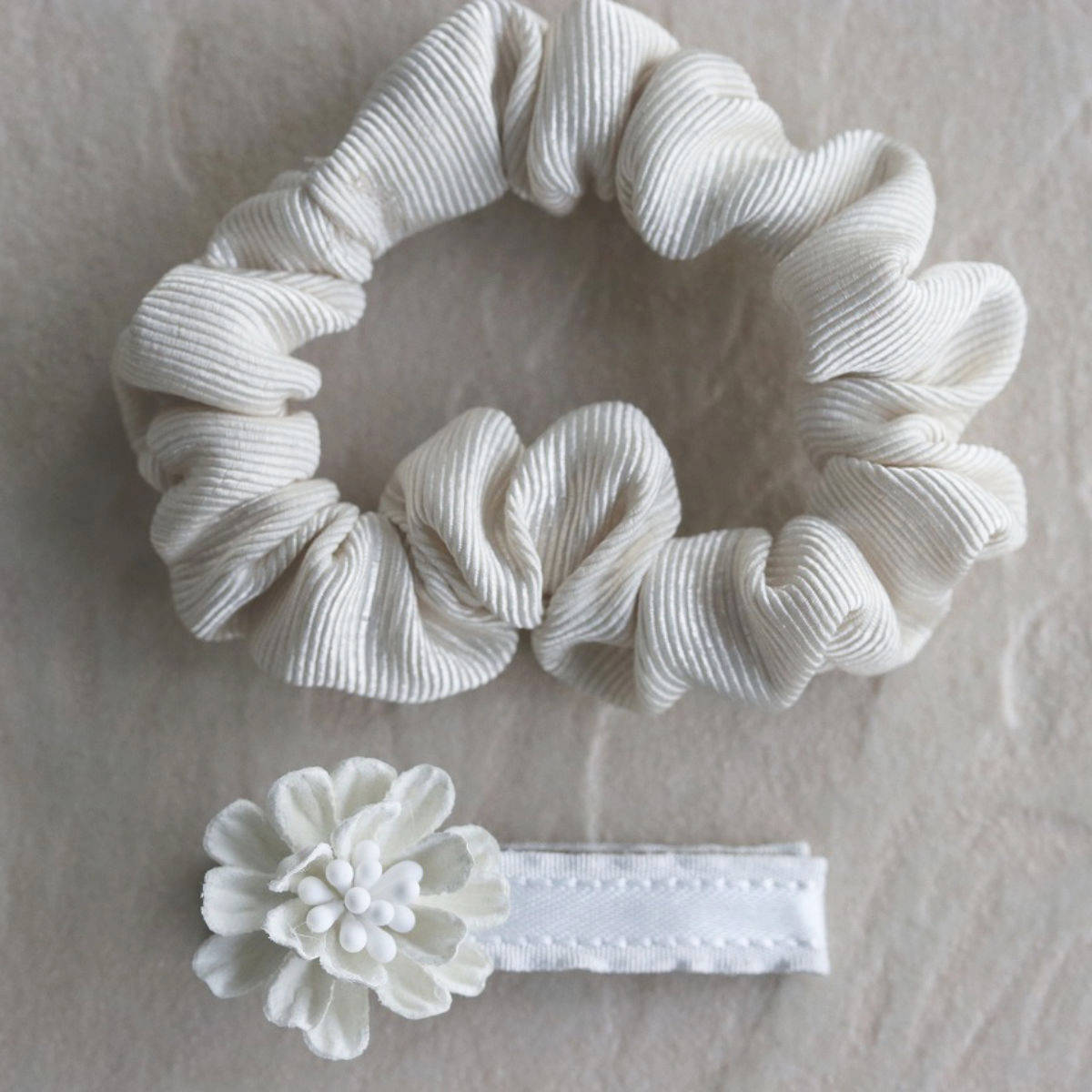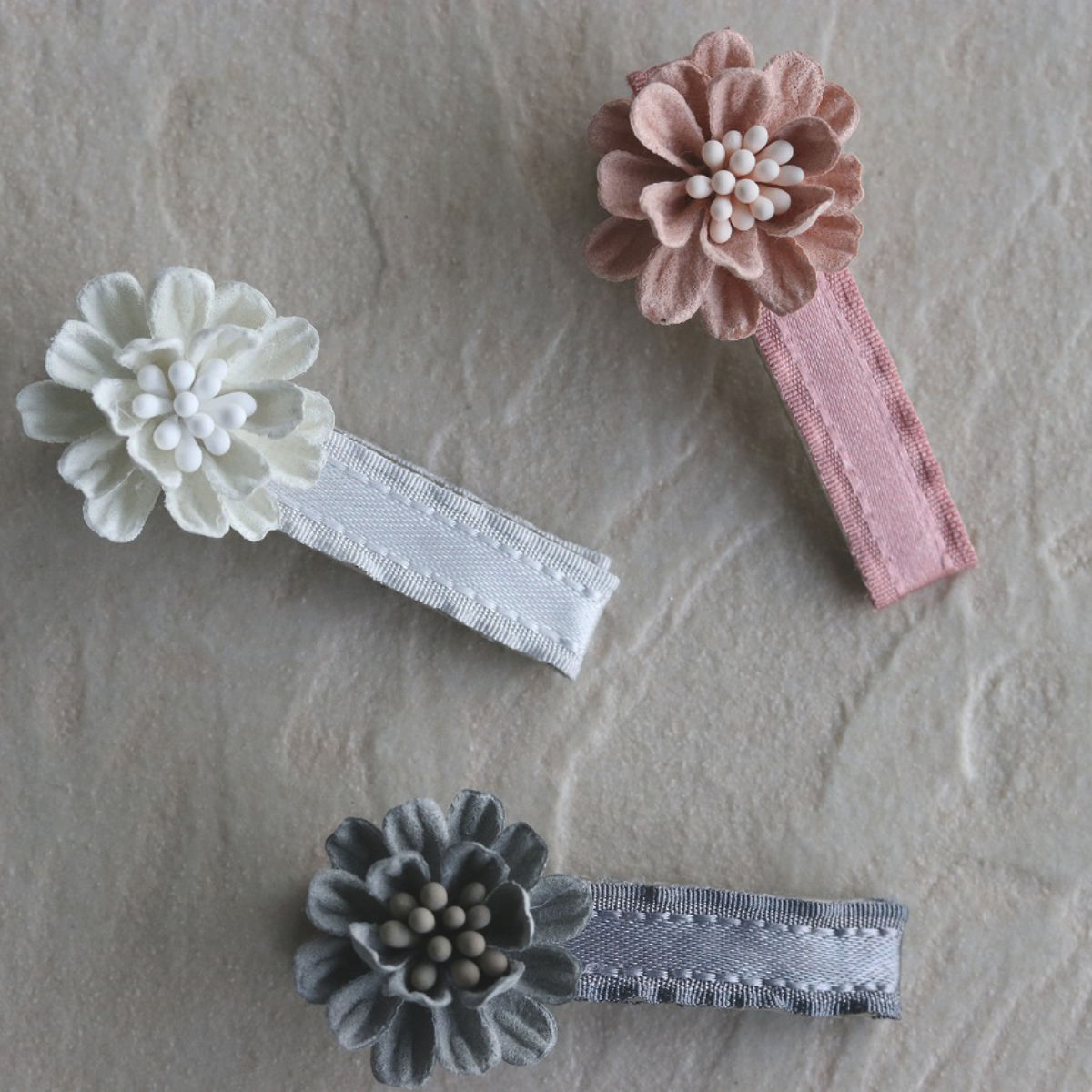 ヘアクリップ シュシュ くすみフラワークリップ&シュシュセット ベビー キッズ ギフト ( ヘアアクセサリー ヘアゴム セット 赤ちゃん 子ども かわいい 髪留め 髪飾り クリップ 韓国 女の子 プレゼント 出産祝い おしゃれ 発表会 ) 【グレー】