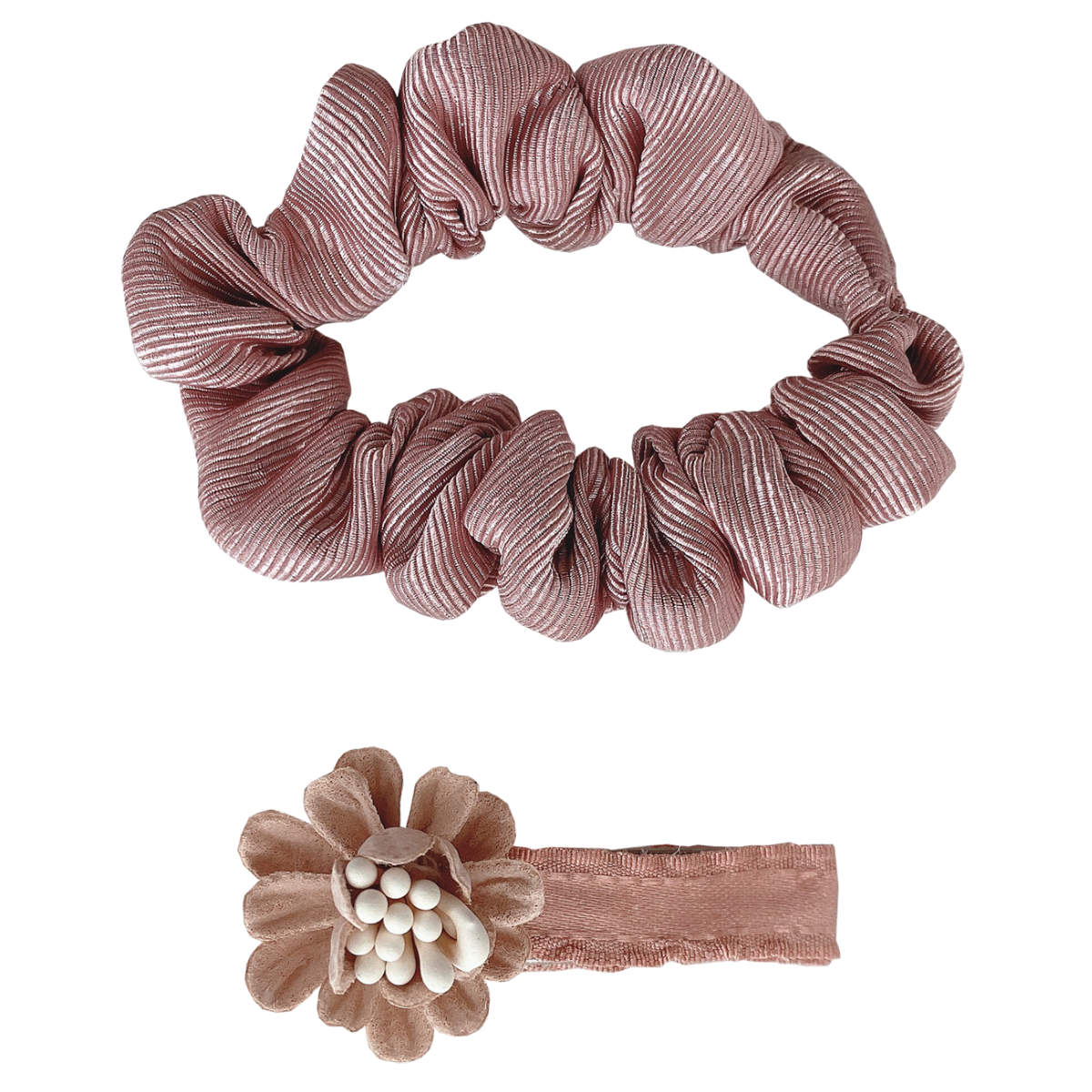 ヘアクリップ シュシュ くすみフラワークリップ&シュシュセット ベビー キッズ ギフト ( ヘアアクセサリー ヘアゴム セット 赤ちゃん 子ども かわいい 髪留め 髪飾り クリップ 韓国 女の子 プレゼント 出産祝い おしゃれ 発表会 ) 【ピンク】