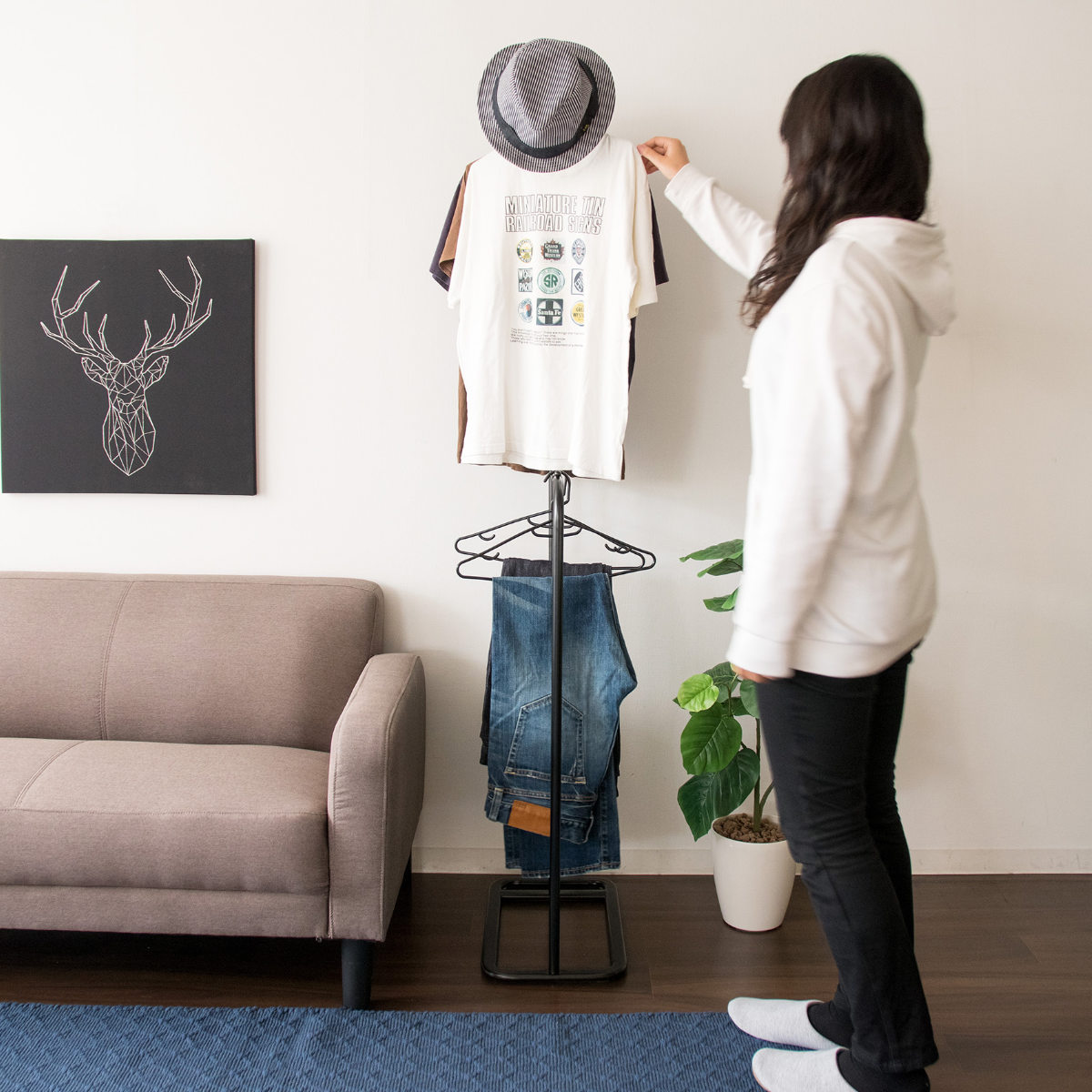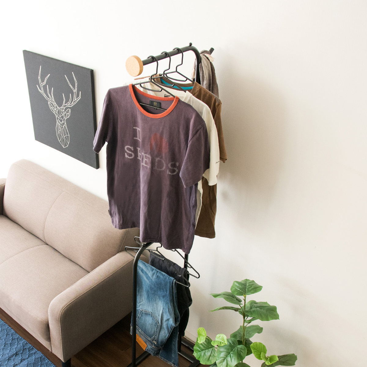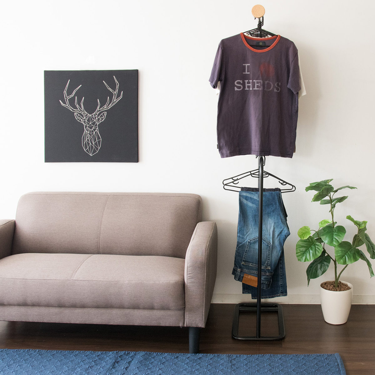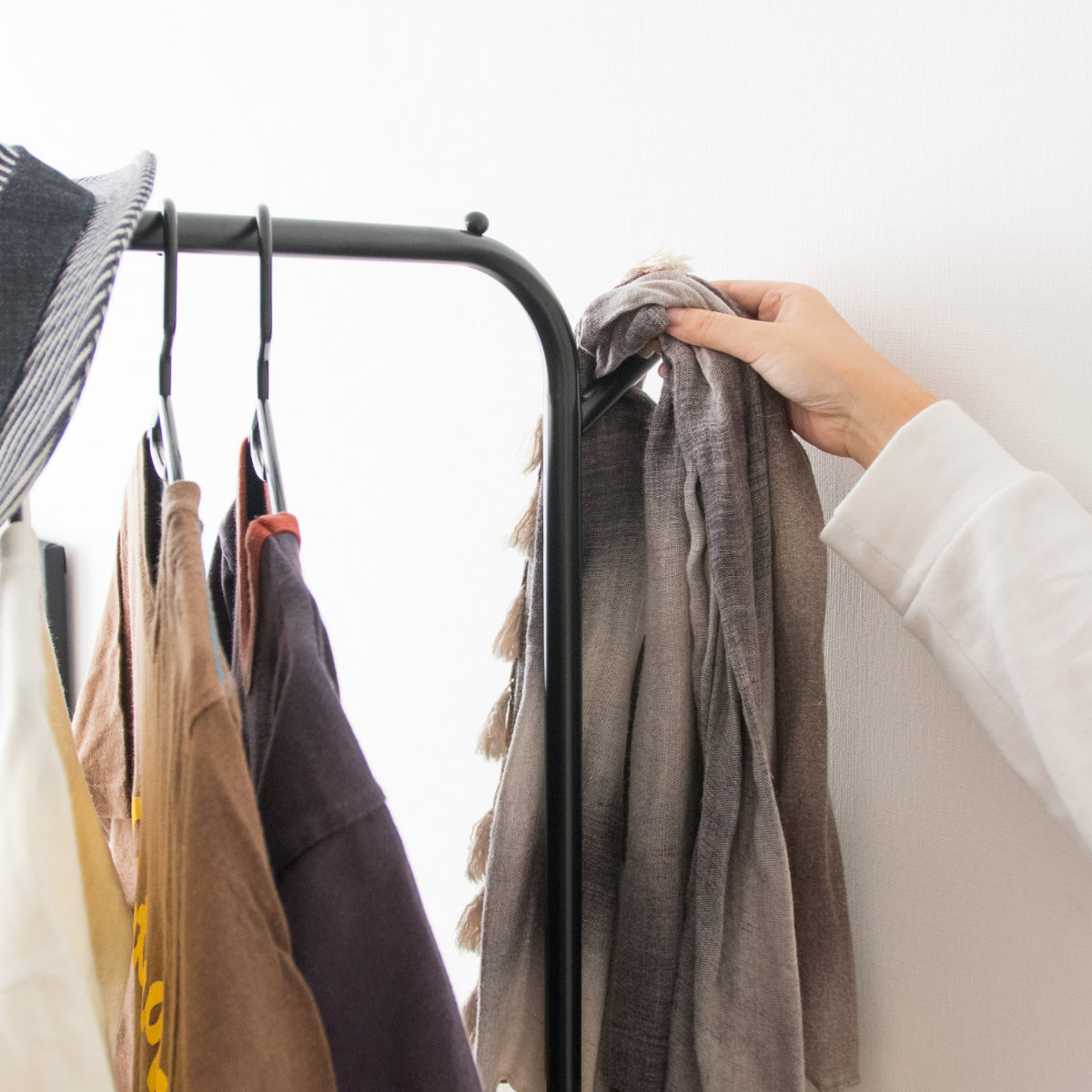 幅28cmと場所を取らないので、家具や壁の隙間にも置けます。玄関先でコートを掛けたり、一人暮らしのお部屋におすすめです。
