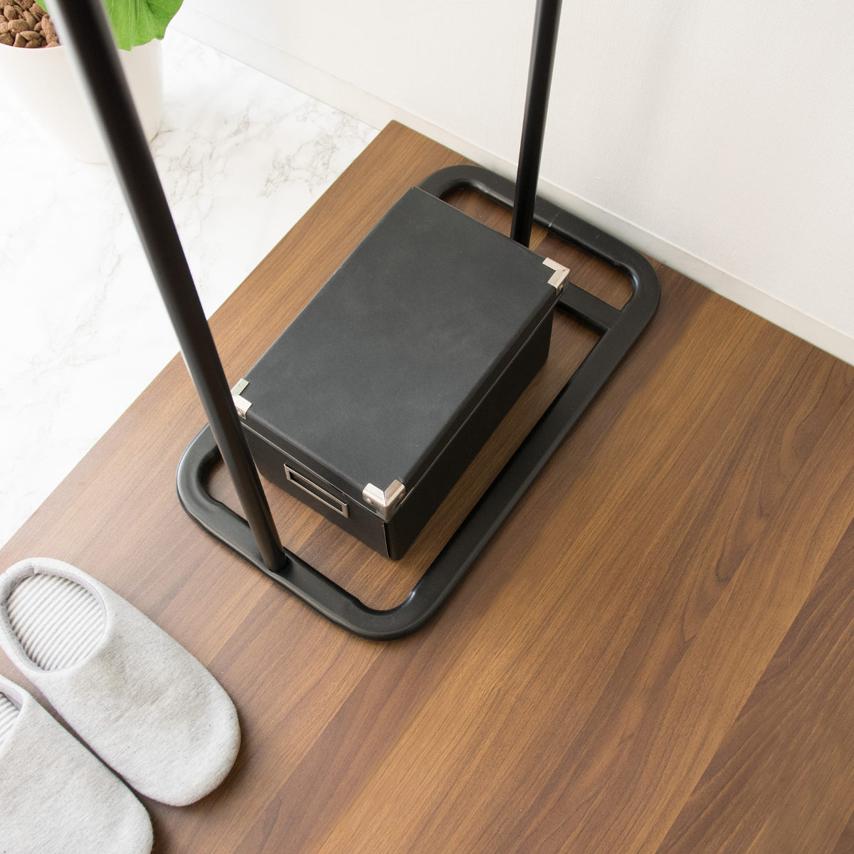 下のベース部分は四角い枠に空きスペースがあるので玄関周りに必要な収納ボックスや雑貨を置くことも出来ます。