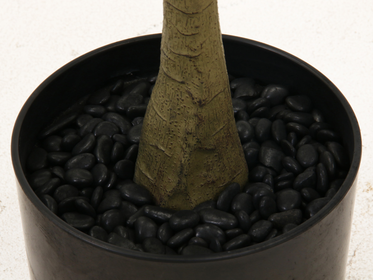 鉢に敷き詰められた黒い小石が高級感を演出してくれます。お気に入りの鉢カバーやチップなどを使用して足元をアレンジするのもおすすめです。
