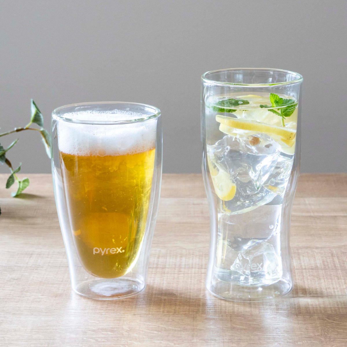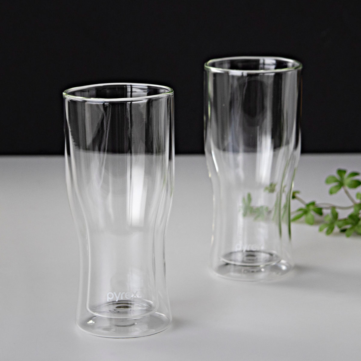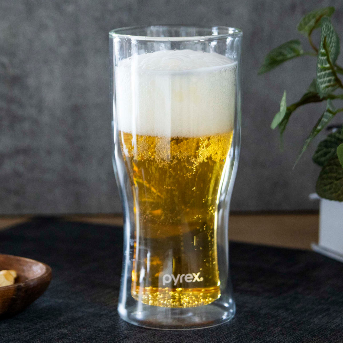 ビアグラス 420ml PYREX パイレックス 耐熱ガラス ( 食洗機対応 コップ グラス ダブルウォールグラス 耐熱 二重構造 ガラス 結露 水滴がつかない ホット アイス ビール アルコール お酒 おしゃれ )